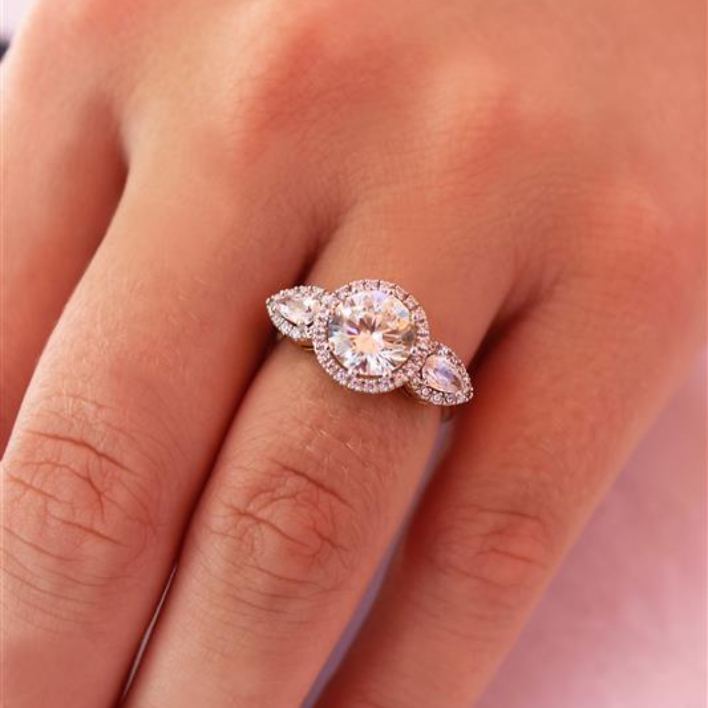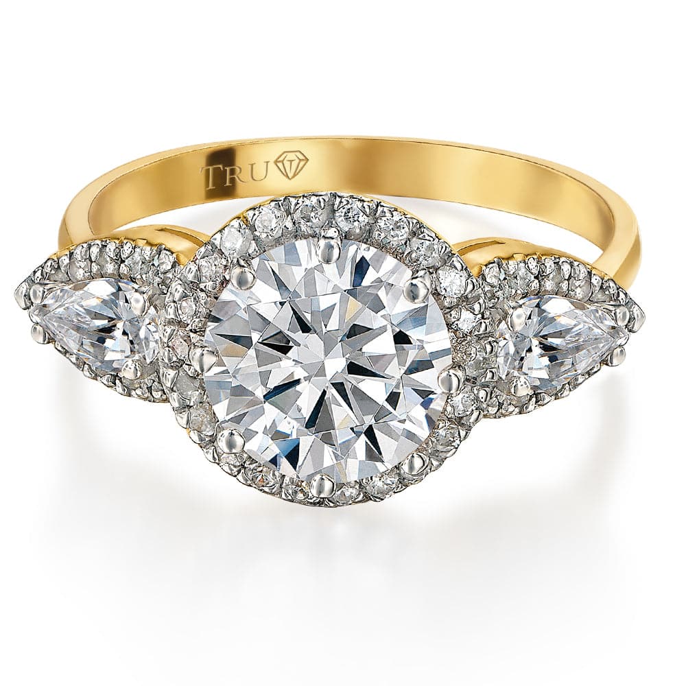Tru-Diamonds™ Round Brilliant and Pear Cut Synthetic Lab Grown Diamond Halo Ring