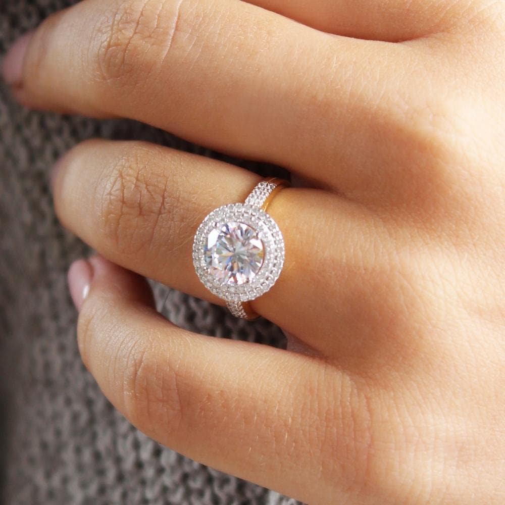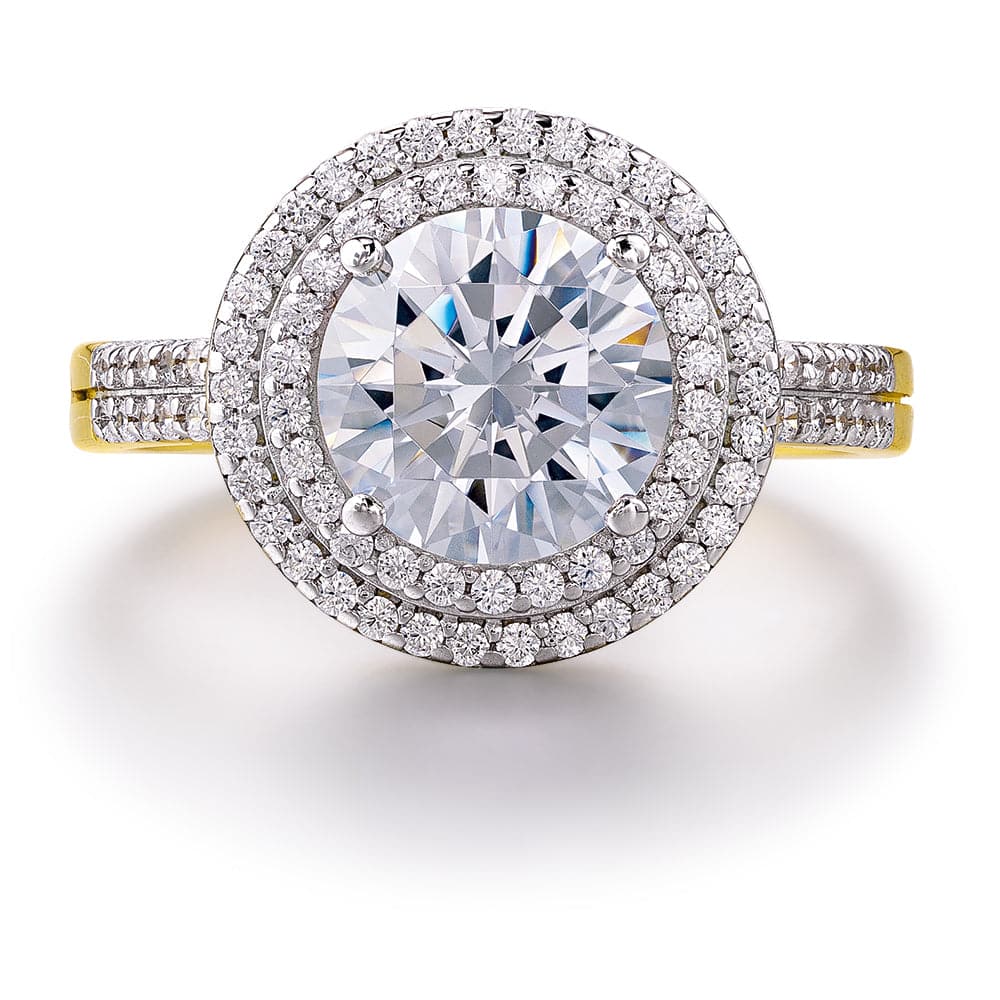 Double the halo, double the sparkle. Our Double Halo Ring features a 2 ct. flawless Tru-Diamonds™ centre gem, surrounded by a double halo, giving it extraordinary brilliance – so expect compliments! It's an ultimate show-stopper!