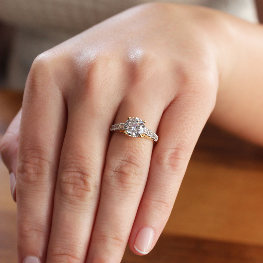 Tru-Diamonds™ Round Brilliant Cut Synthetic Lab Grown Diamond Solitaire Shoulder Set Ring