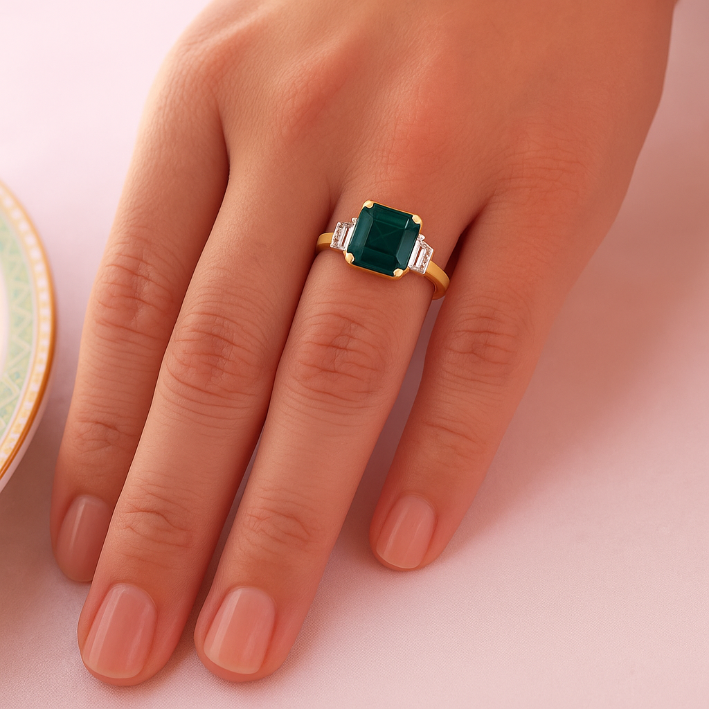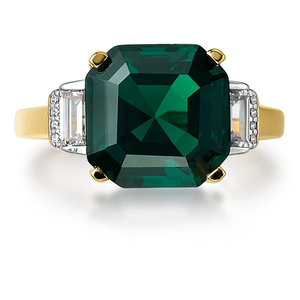 Tru Emerald 10.15 Carat Asscher Cut Synthetic Lab Grown Diamond Rockefeller Replica Ring