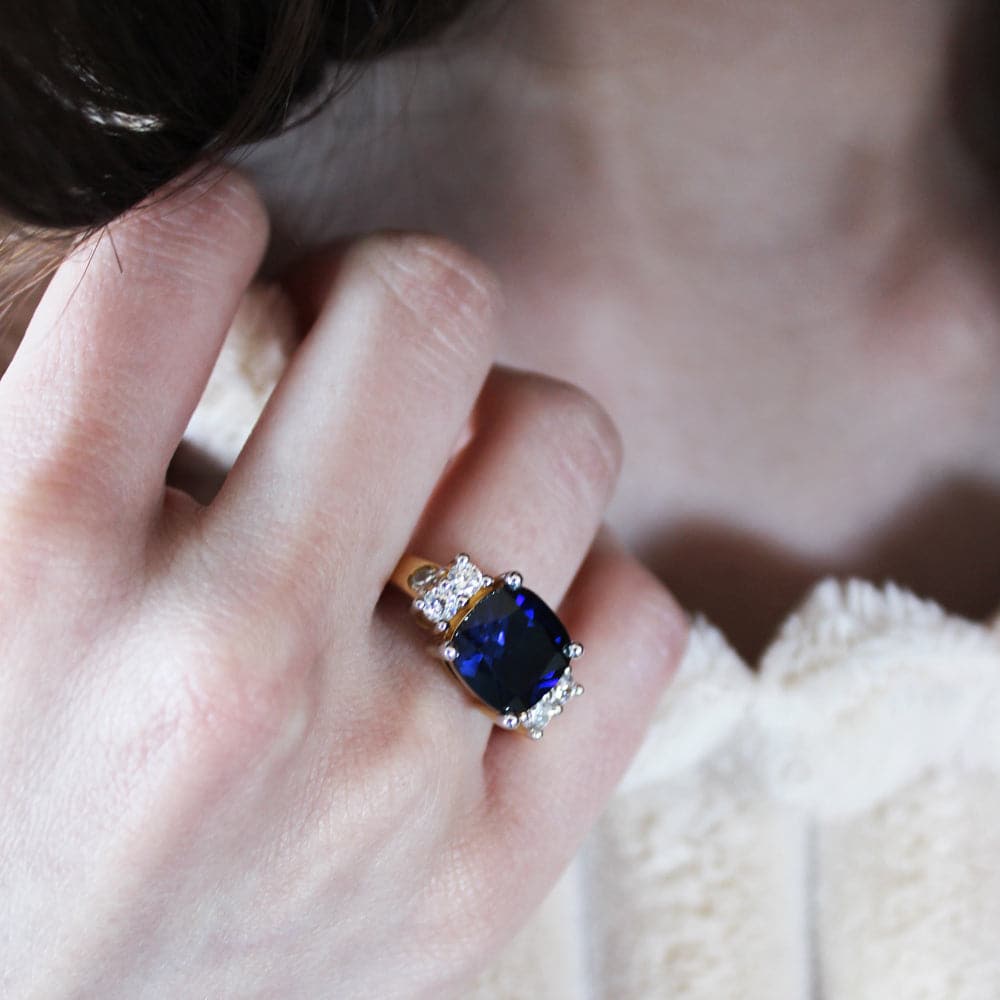 As a luxury accessory you’re sure to love, the Tru Sapphire Perfection Ring brings a striking focal point to any outfit. This striking ring is set with a 5.62 carat Tru Sapphire, flanked by ice white Tru-Diamonds™ and generously clad for the most luxurious fine-jewellery finish. Enjoy a flood of compliments when wearing this ring to any special event.