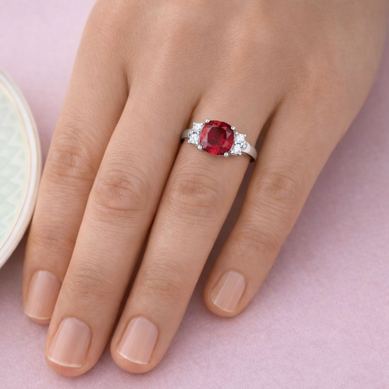 Tru Ruby Cushion Cut Synthetic Lab Grown Diamond Ring