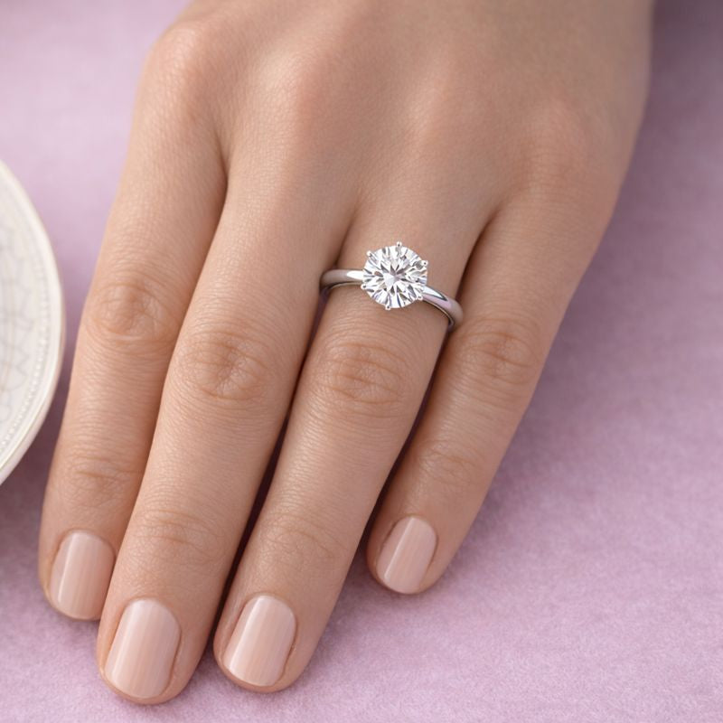 Timeless elegance at its most radiant. This exquisite solitaire features a 3 carat round brilliant centre gem, perfectly set in a sleek six-prong mount to showcase its fire and brilliance from every angle.