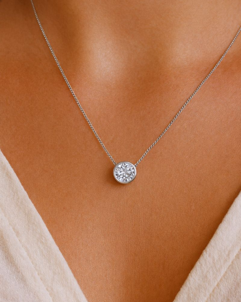 Perfect for everyday wear, our 1.25 ct. Bezel Solitaire Pendant is delicately elegant to say the least.