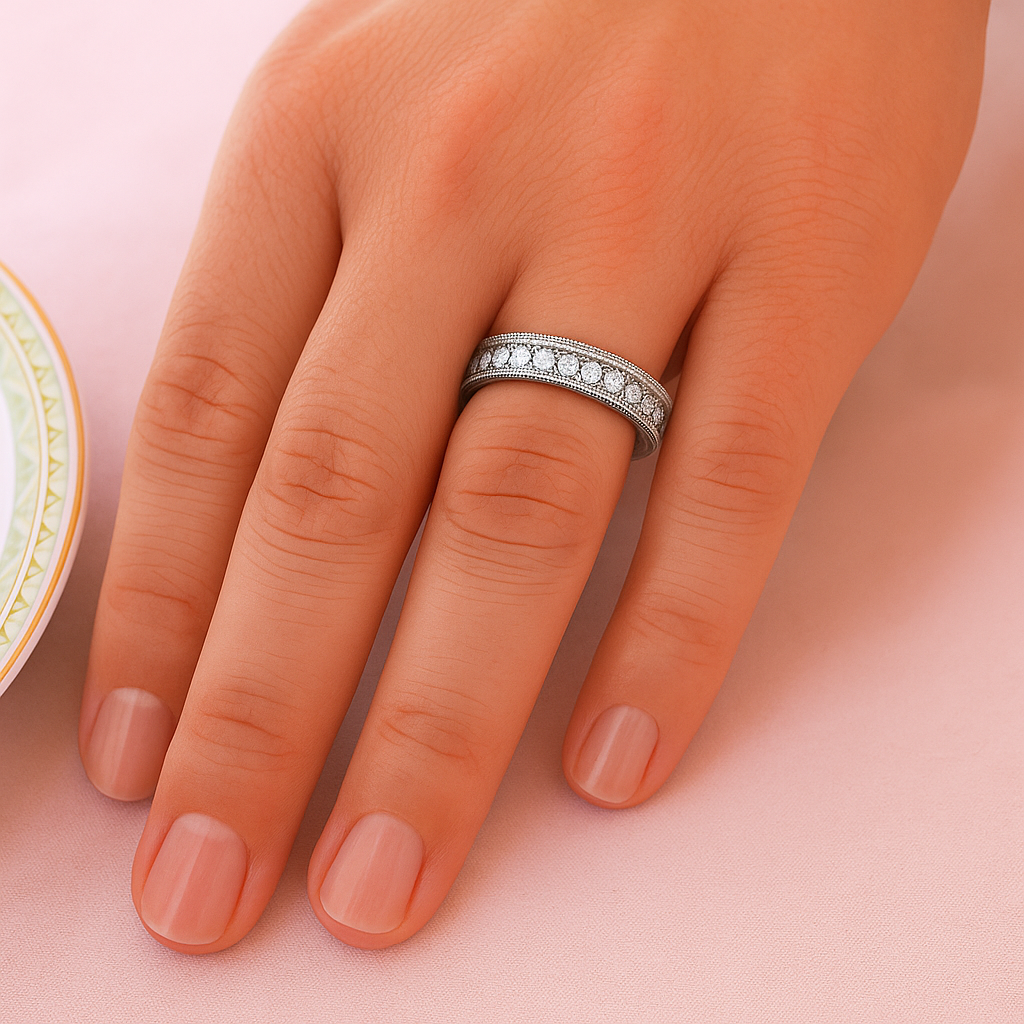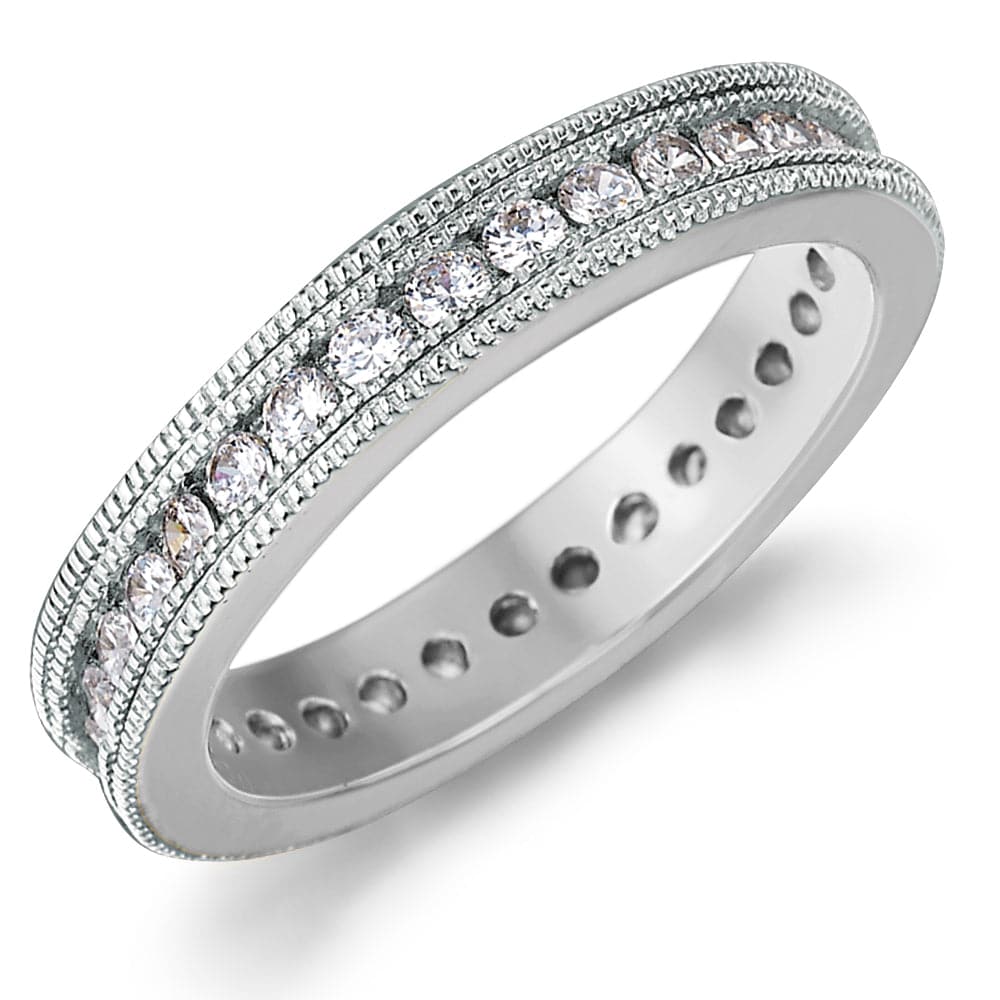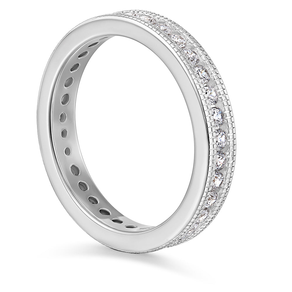 Our Forever Yours Eternity ring features a total weight of 0.95 ct. Tru-Diamonds™ in a unique setting to create a clean, youthful look – this ring is the ideal ring for the contemporary woman.