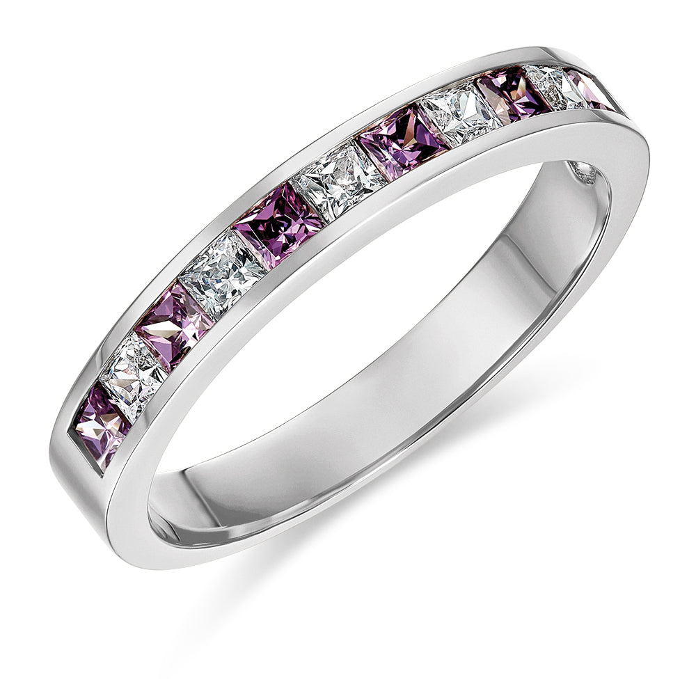 Tru Amethyst & Tru-Diamonds™ Princess Cut Synthetic Lab Grown Diamond Eternity Ring