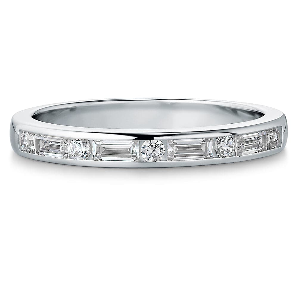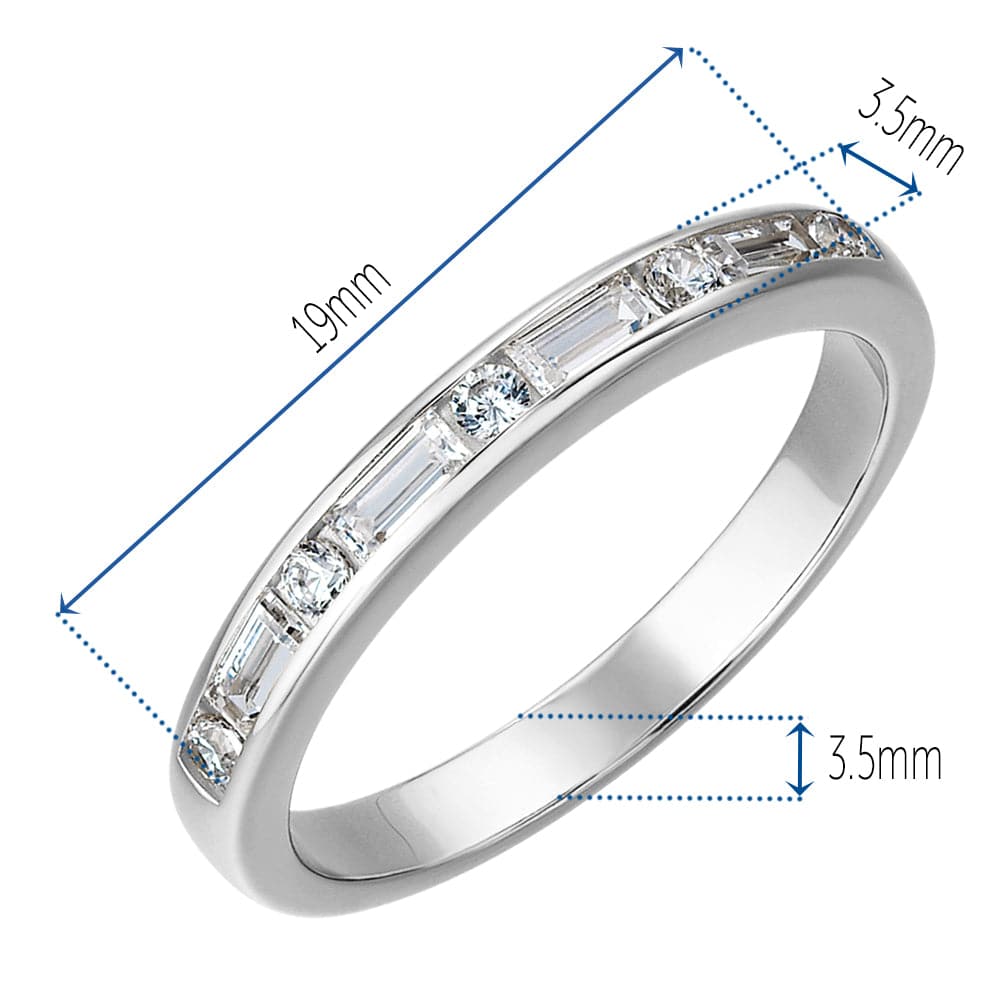 Tru-Diamonds™ Baguette and Round Cut Synthetic Lab Grown Diamond Channel Set Eternity Ring