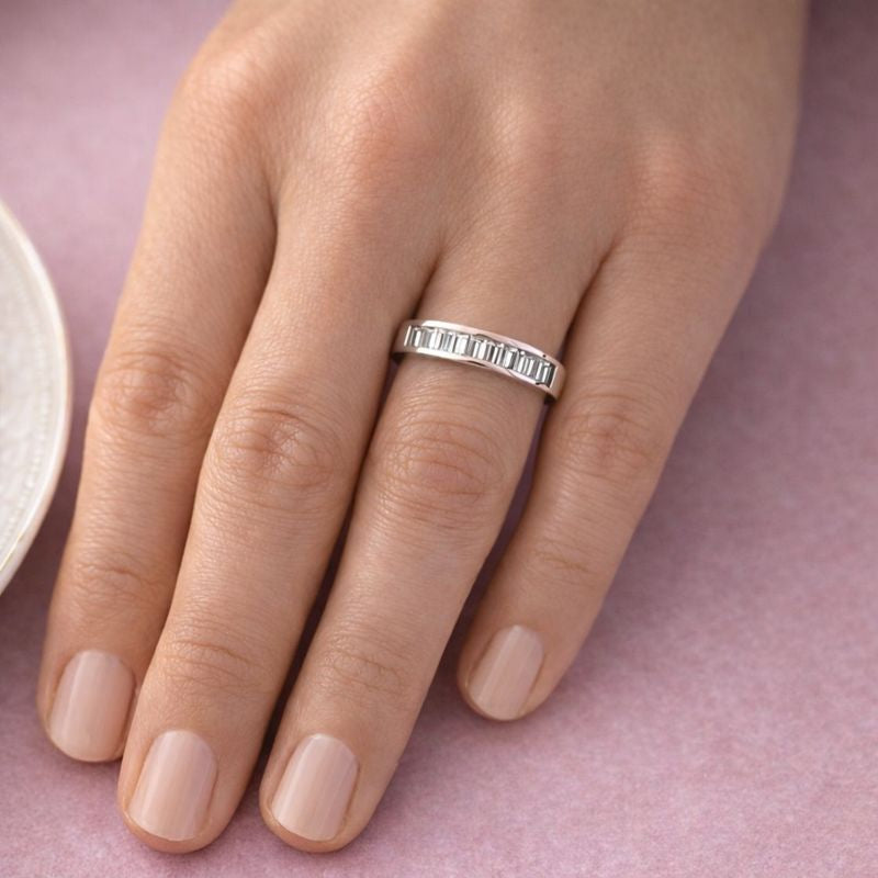 Tru-Diamonds™ Baguette Cut Synthetic Lab Grown Diamond Channel Set Half Eternity Ring