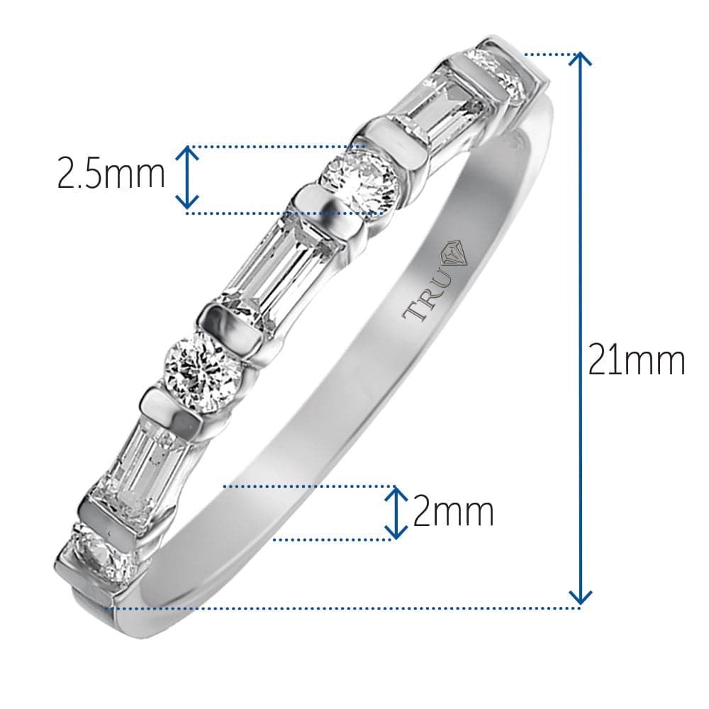 Tru-Diamonds™ Round and Baguette Cut Synthetic Lab Grown Diamond Half Eternity Ring