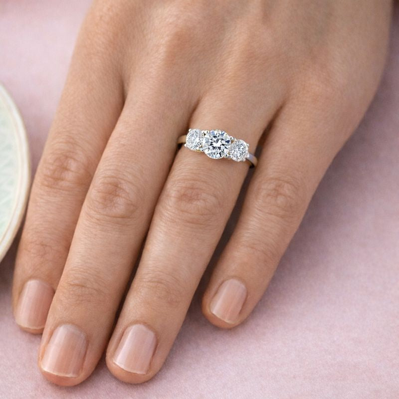 Tru-Diamonds™ Round Cut Synthetic Lab Grown Diamond Trilogy Ring