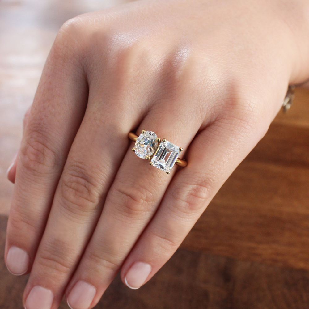Tru-Diamonds™ 4 Carat Oval and Emerald Cut Synthetic Lab Grown Diamond Moi et Toi Engagement Ring