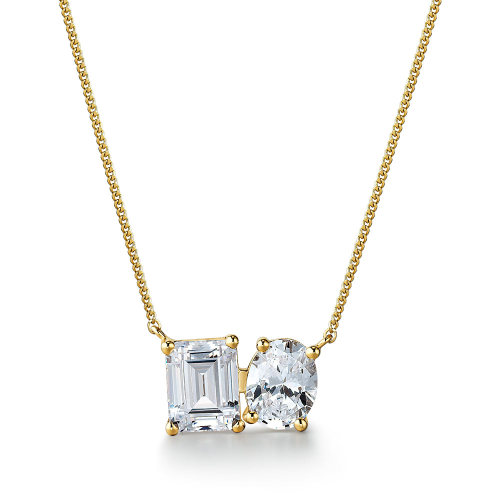 Tru-Diamonds™ Oval & Emerald Cut Synthetic Lab Grown Diamond Toi et Moi Pendant Necklace
