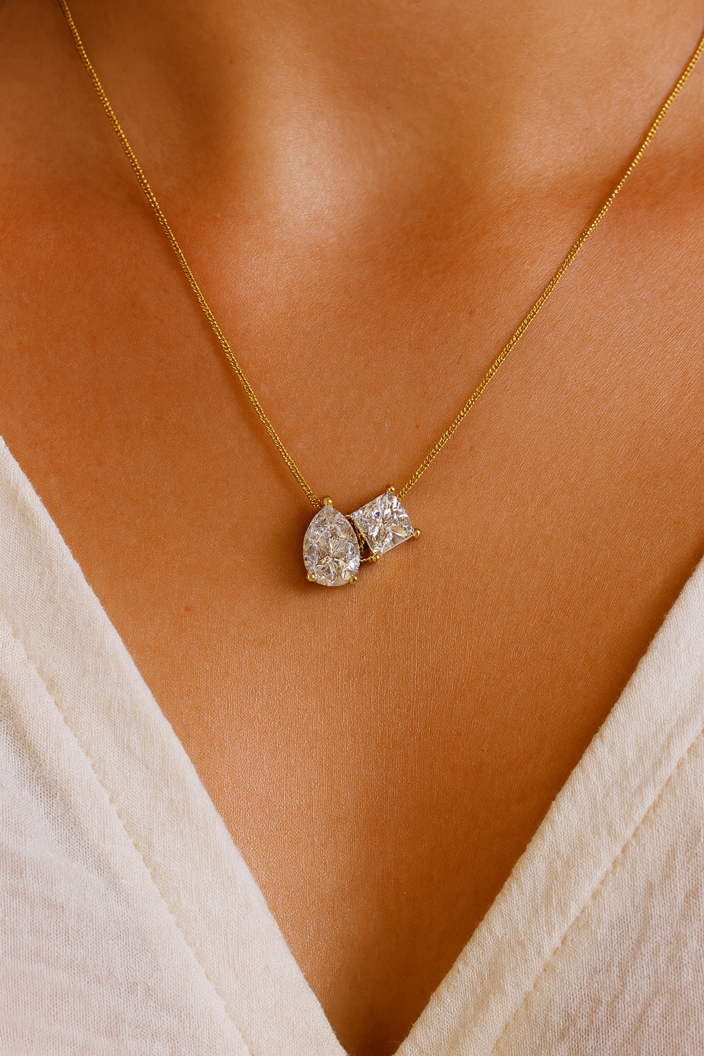 Toi et Moi Pear and Princess Cut Necklace