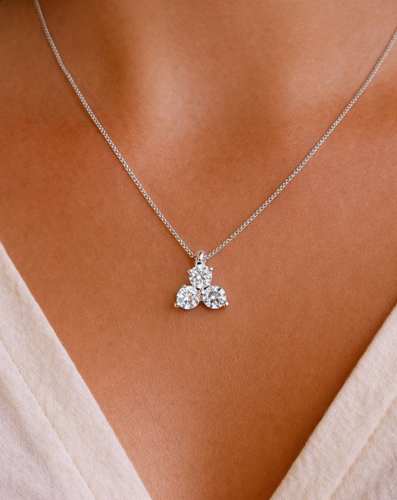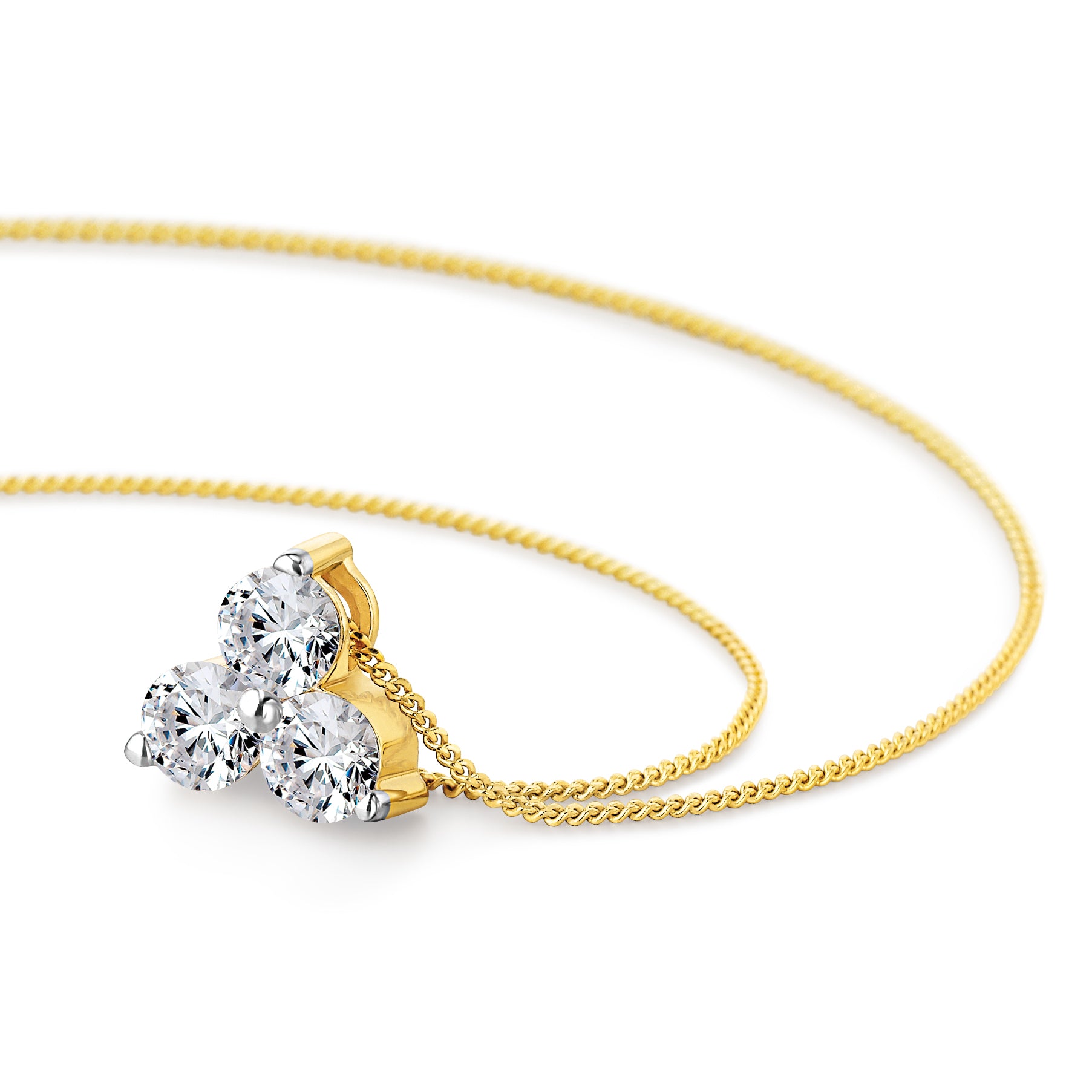 Tru-Diamonds™ Round Brilliant Cut Synthetic Lab Grown Diamond Trilogy 3 Stone Pyramid Pendant