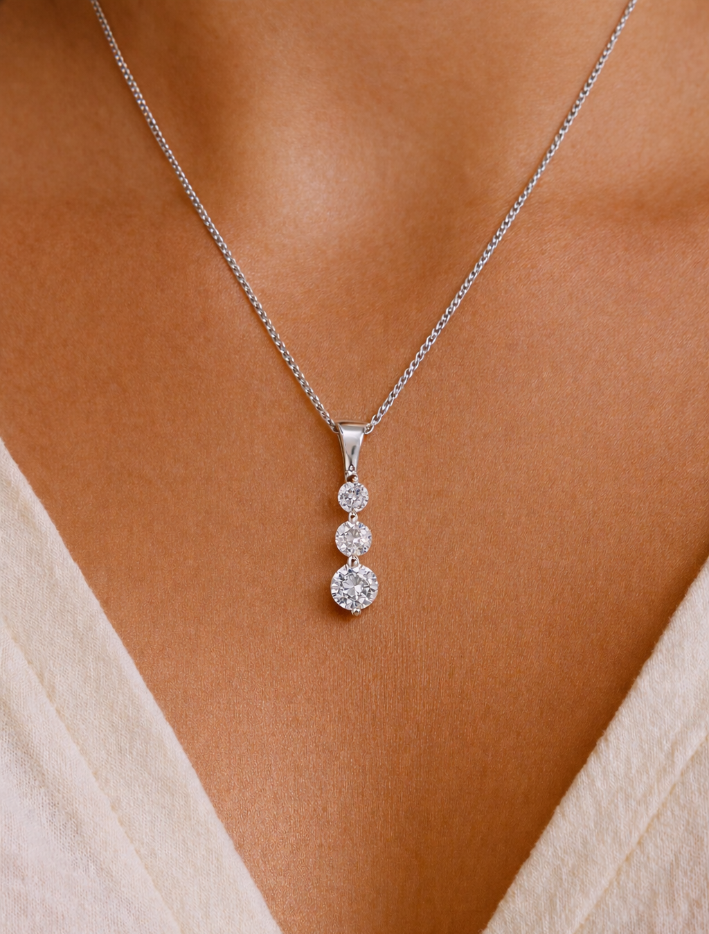 The Glowing Trilogy Pendant has a three-tier design featuring 3 Tru-Diamonds™ gems which is elegance at its best, with a little sparkle.
