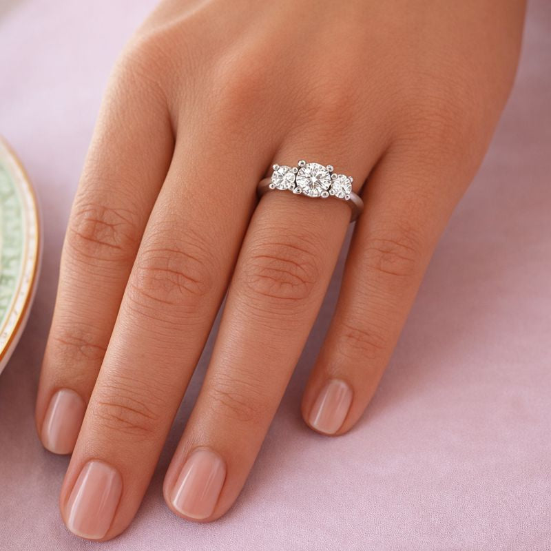 Tru-Diamonds™ Round Brilliant Cut Synthetic Lab Grown Diamond Trilogy Ring