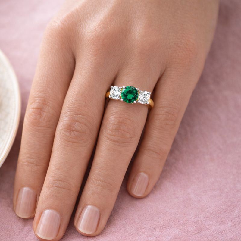 Tru Emerald Round Cut Simulated Lab Grown Diamond Trilogy Ring
