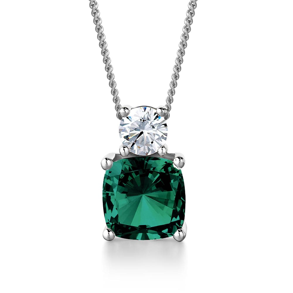 Tru Emerald Cushion Cut Synthetic Lab Grown Diamond Pendant with 18 Inch Chain