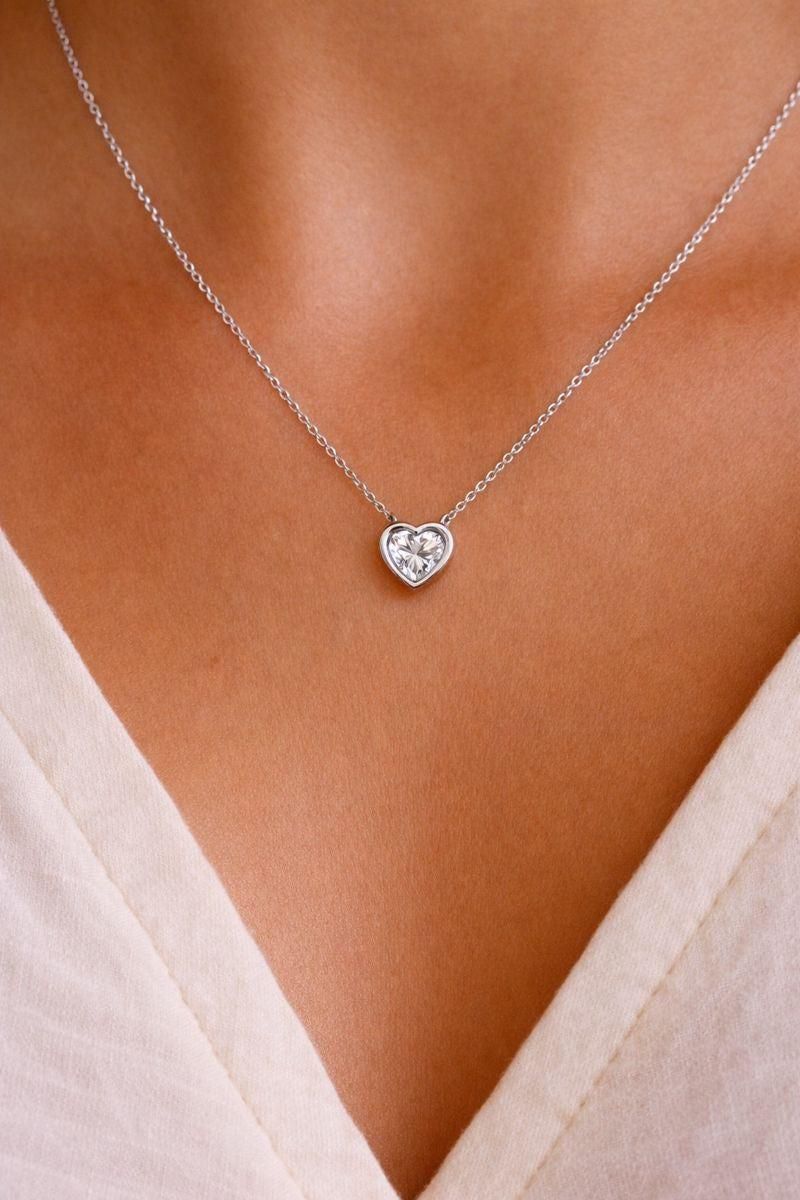 Tru-Diamonds™ Heart Cut Synthetic Lab Grown Diamond Bezel Set Solitaire Pendant with 18 Inch Chain