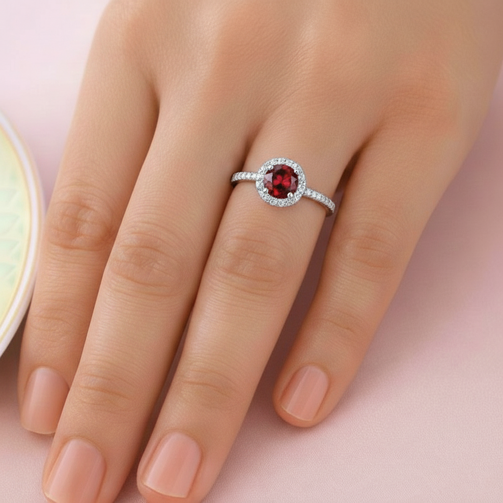 Tru Ruby Posh Round Halo Synthetic Lab Grown Diamond Ring