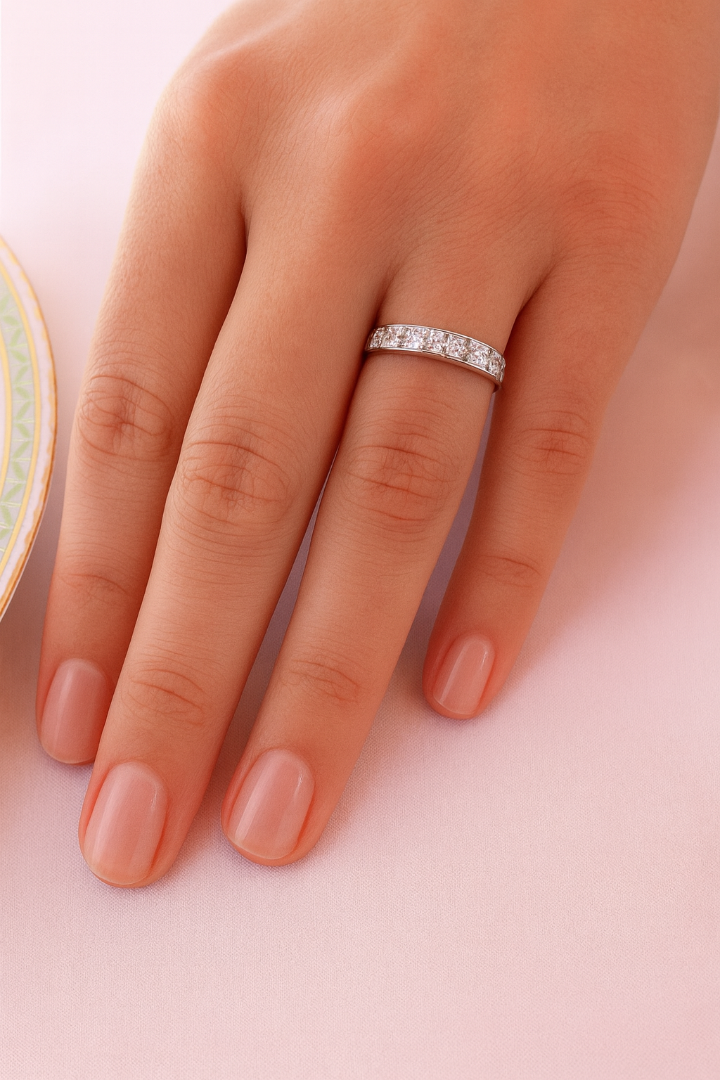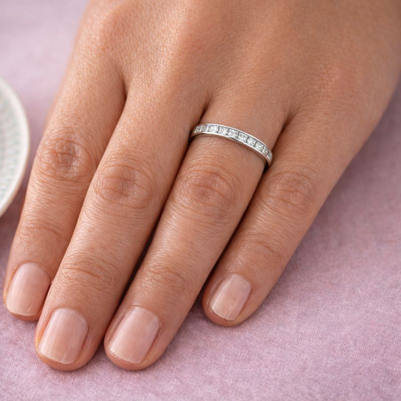 Tru-Diamonds™ Princess Cut Channel Set Synthetic Lab Grown Diamond Half Eternity Ring Wedding Band