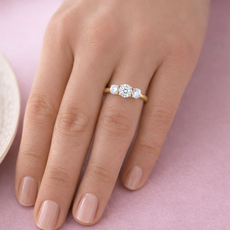 Tru-Diamonds™ Round Brilliant Cut Synthetic Lab Grown Diamond Trilogy Ring