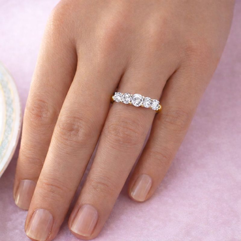 For an ideal addition to your jewellery collection, or a very special gift, the Ablaze Eternity Ring is an absolute must-have. This five gem eternity ring features perfectly matched, round brilliant-cut Tru-Diamonds™ the largest of which is a 0.5 carat gem set in its centre claws.