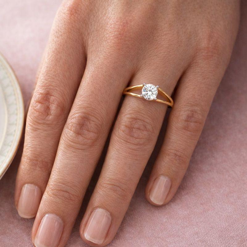 With the special play of a split band and a single round brilliant-cut centre gem as focal point, the Aphrodite Solitaire Ring is the essentially classic token of love. You can proudly show off this striking ring for decades to come.