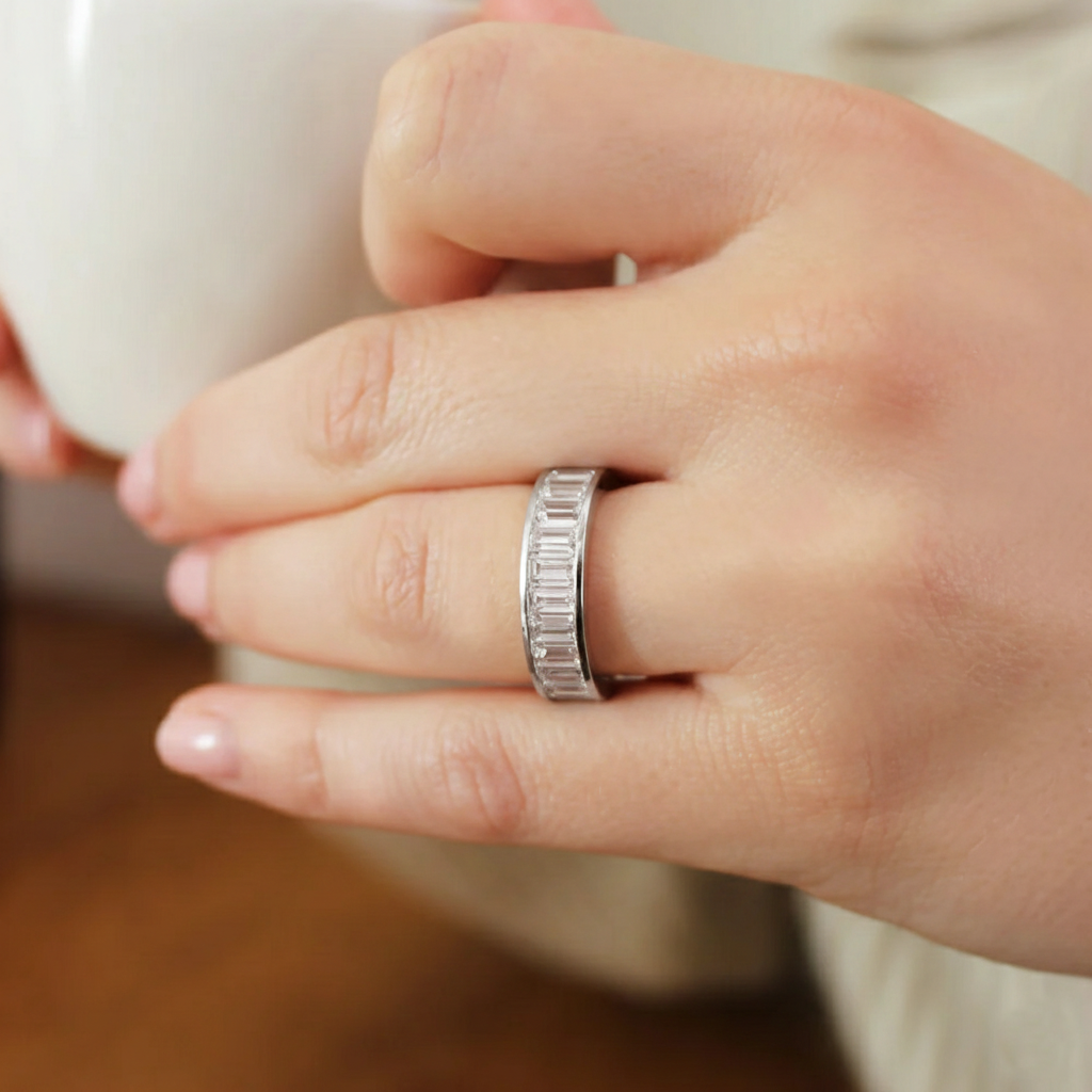 Tru-Diamonds™ Emerald Cut Synthetic Lab Grown Diamond Channel Set Eternity Ring