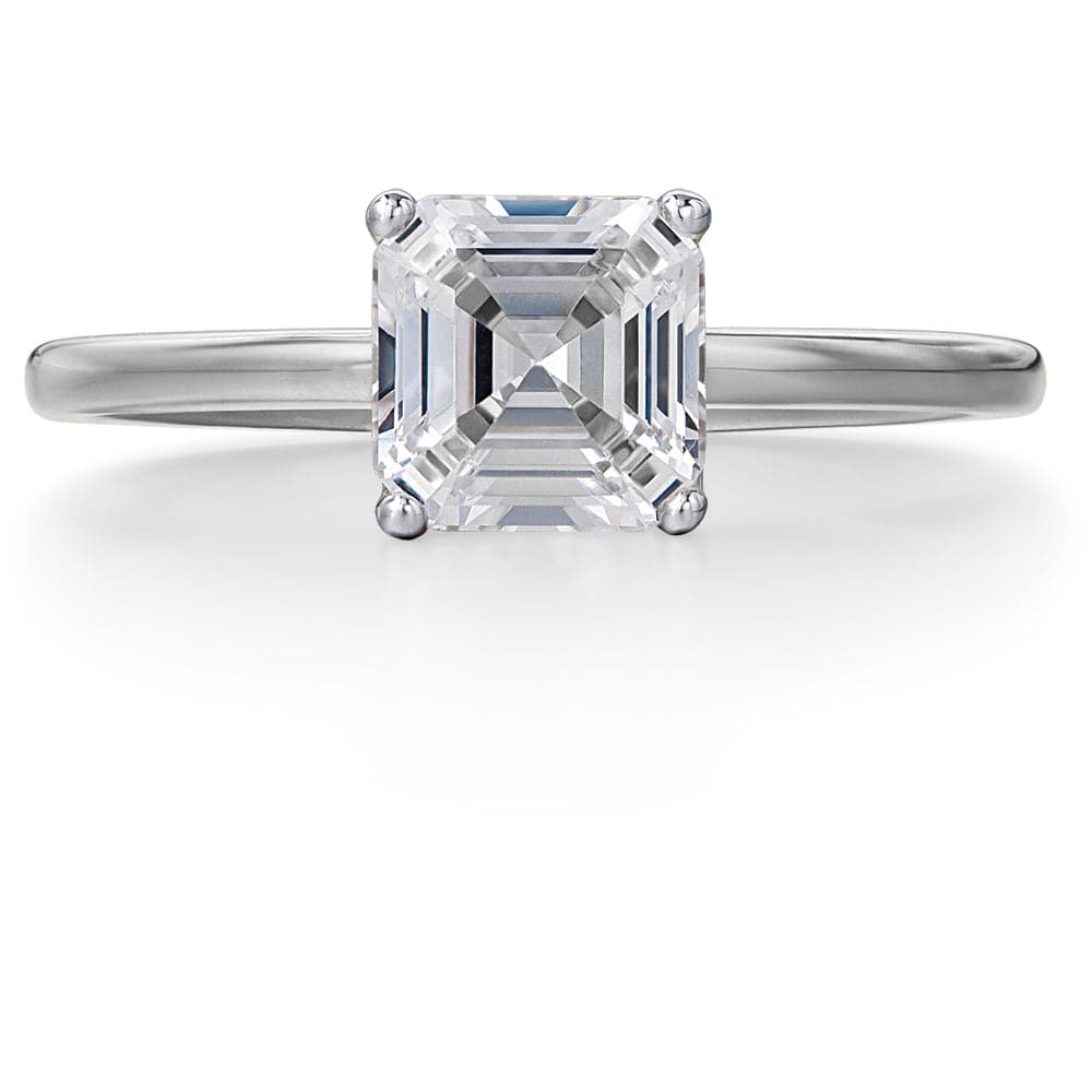 Tru-Diamonds™ Asscher Cut Synthetic Lab Grown Diamond Solitaire Engagement Ring