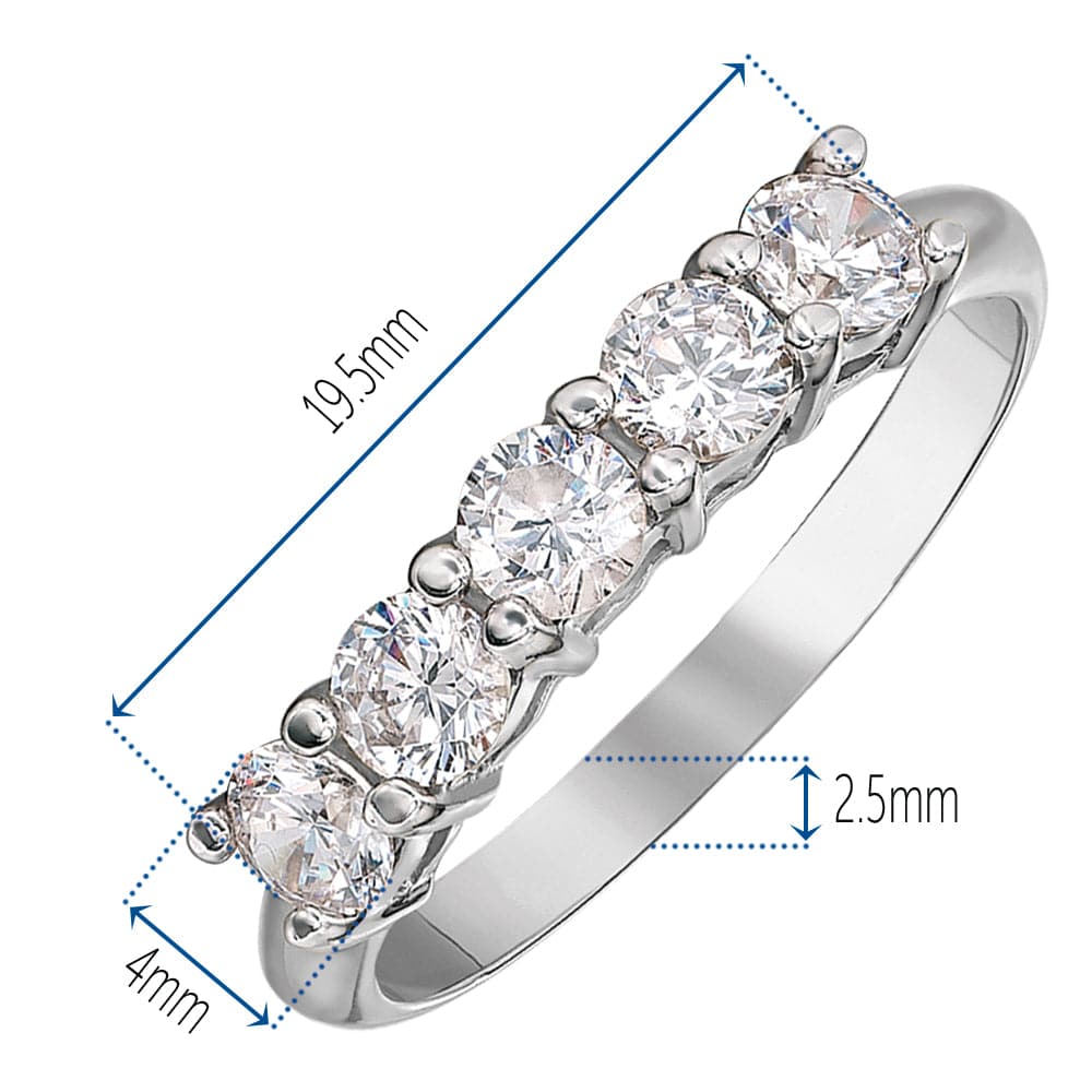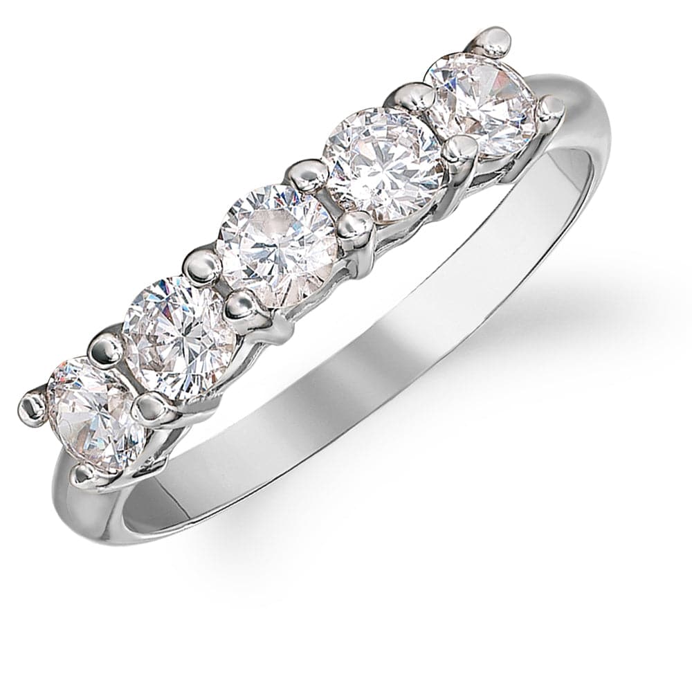 Claw-set with perfectly matched, brilliant-cut Tru-Diamonds™ totalling 1.25 carats, the Grand Gesture Ring is the definitive five-stone eternity ring. As a design favoured for centuries by young and old alike, this classic ring is an essential addition to any jewellery box.