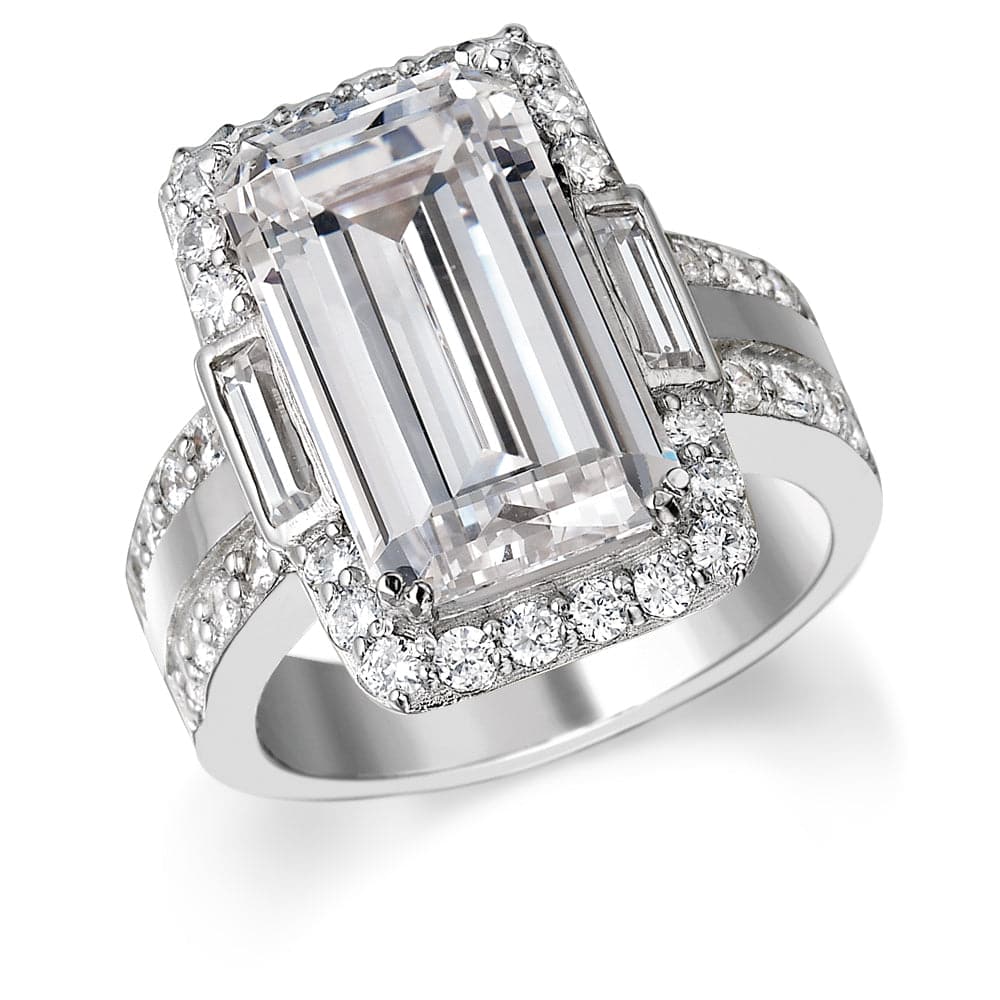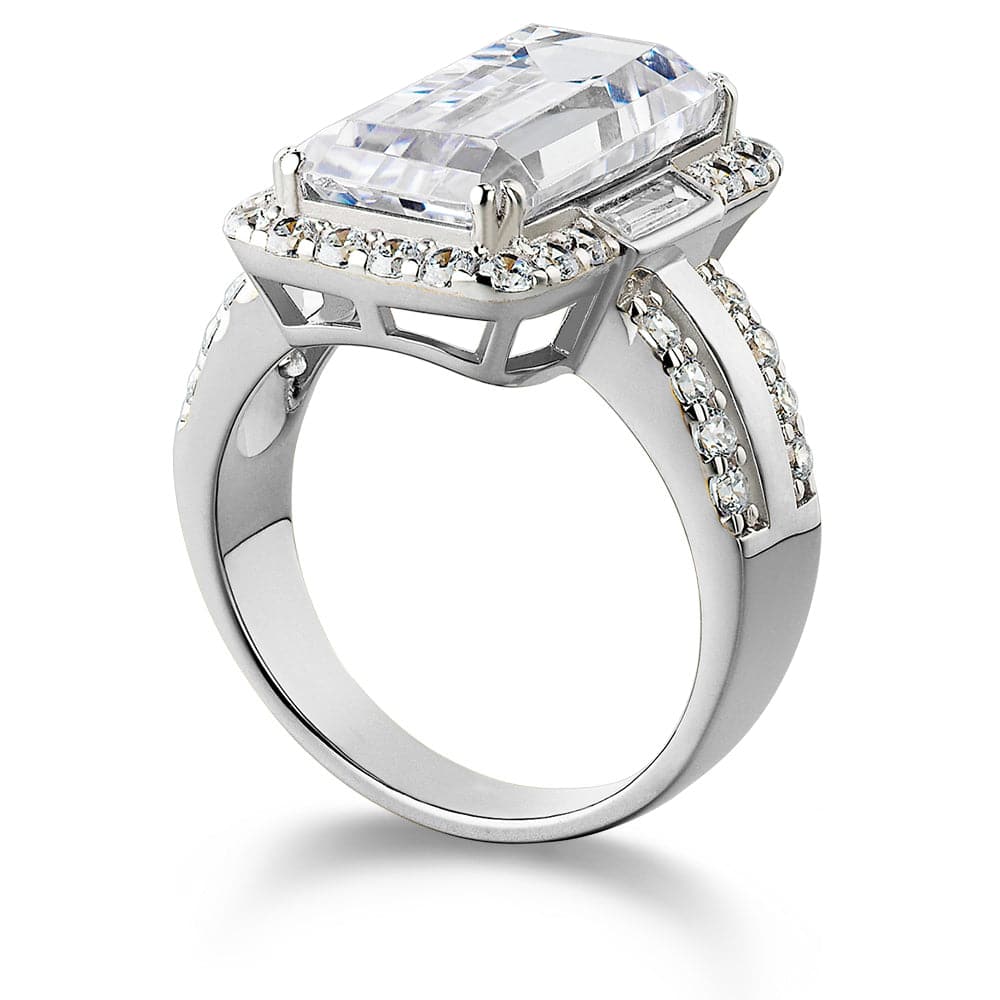 Tru-Diamonds™ Emerald Cut Synthetic Lab Grown Diamond Halo Ring