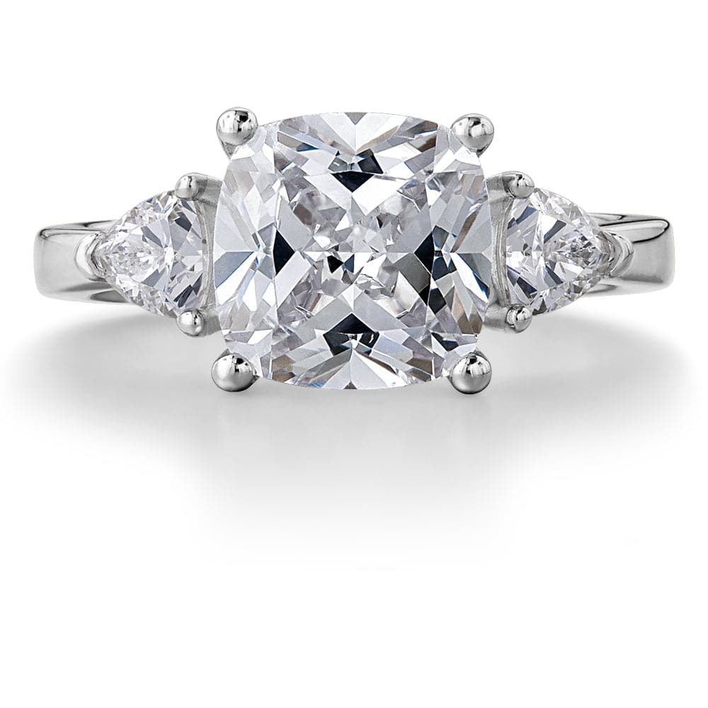 Tru-Diamonds™ Cushion and Trillion Cut Synthetic Lab Grown Diamond Trilogy Ring