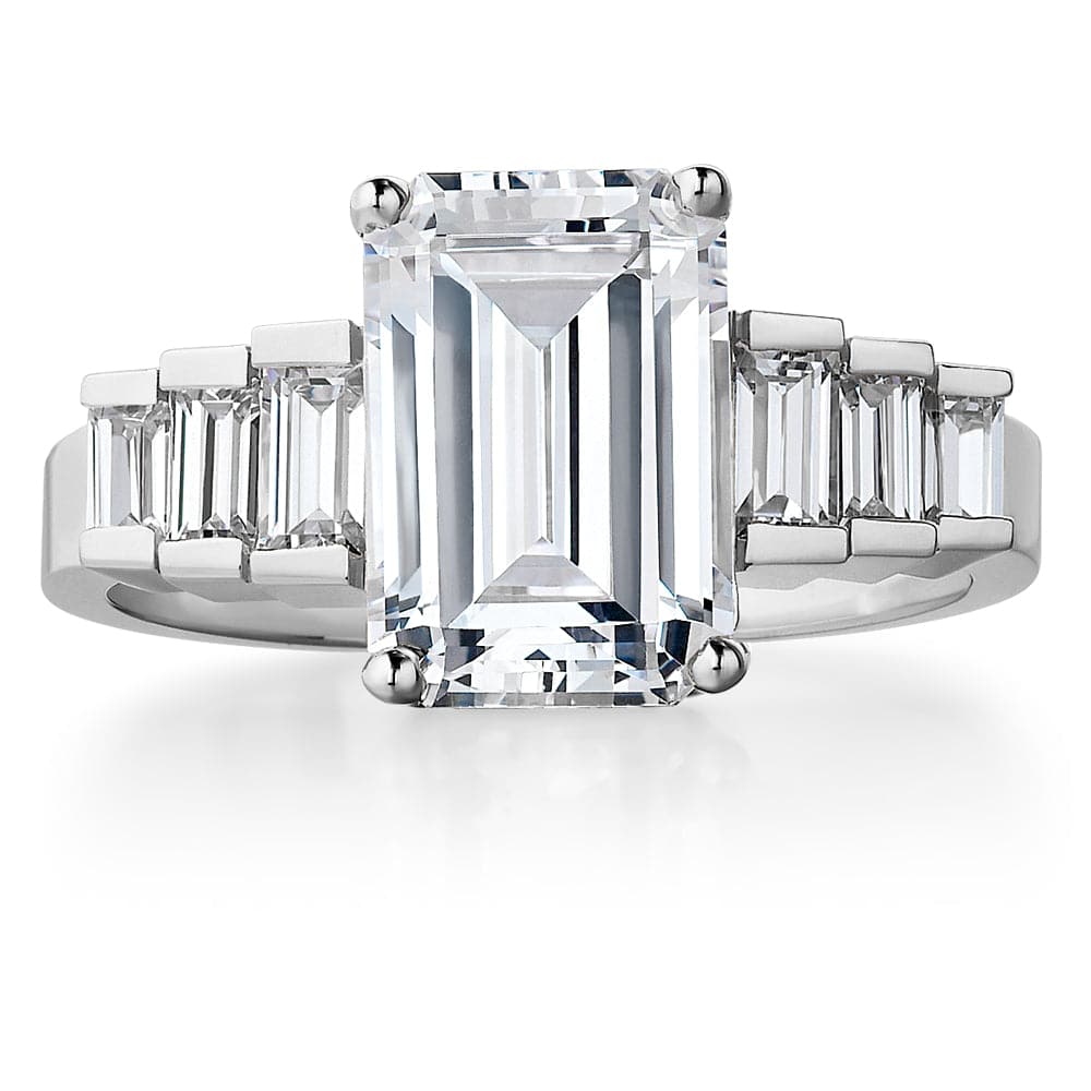 Tru-Diamonds™ Emerald & Baguette Cut Synthetic Lab Grown Diamond Queen Camilla Engagement Ring