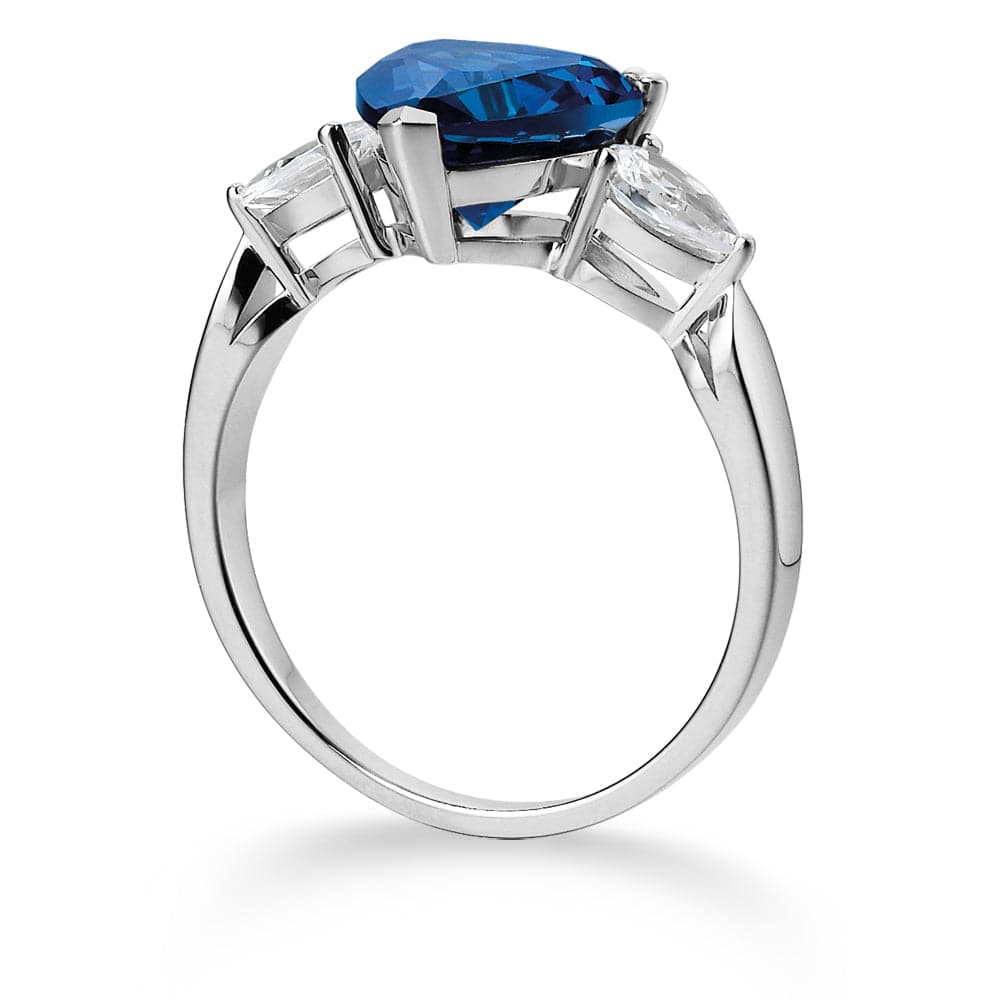 This eye-catching piece has a 3.5 carat heart shaped Tru-Diamonds™ centre gem with a matching pure white, pear-cut gem on either side.