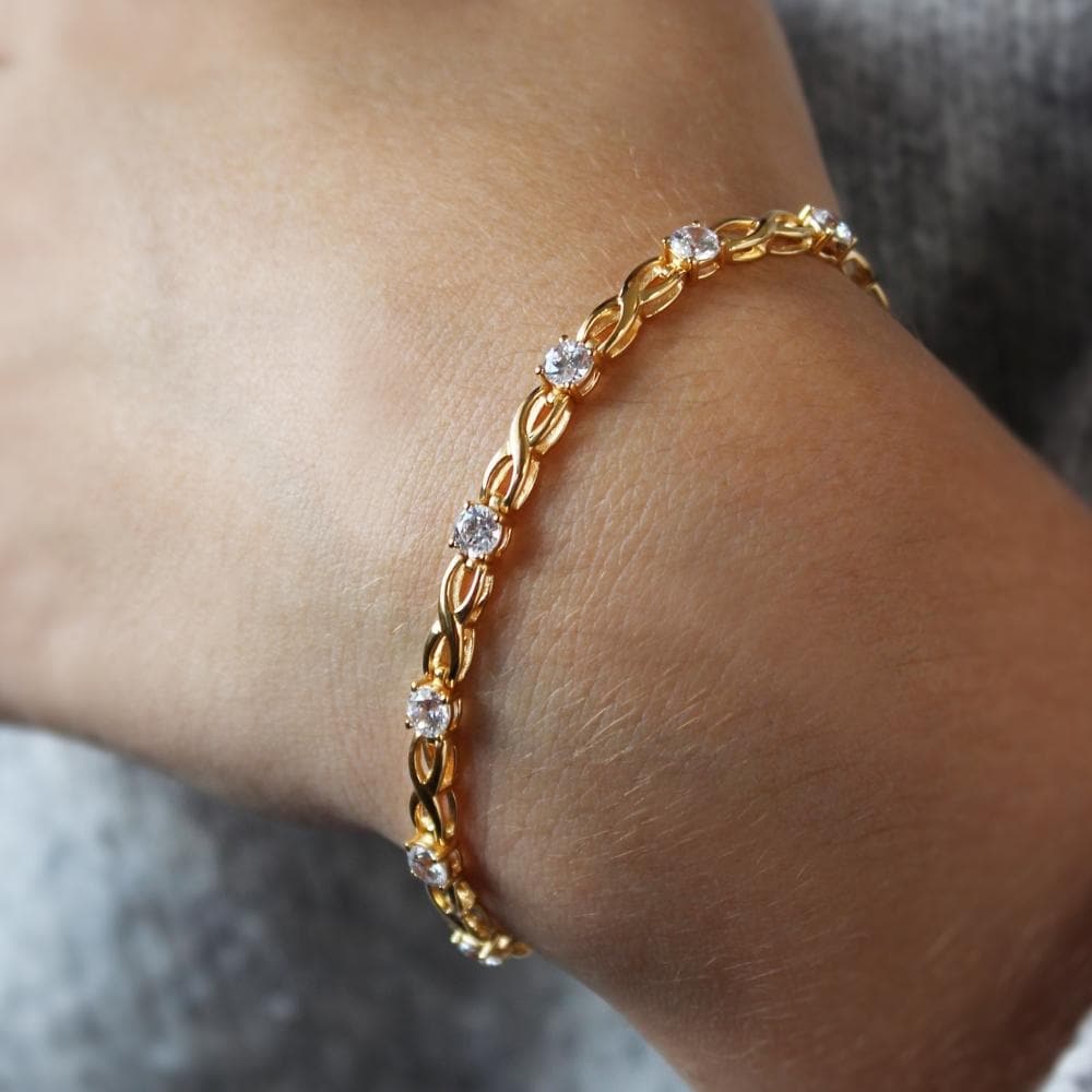 The delicately unique 7-inch chain of the Glowing Links Bracelet glistens with 10 expertly placed Tru-Diamonds™ that style this elegant bracelet beautifully.