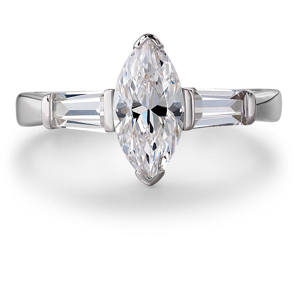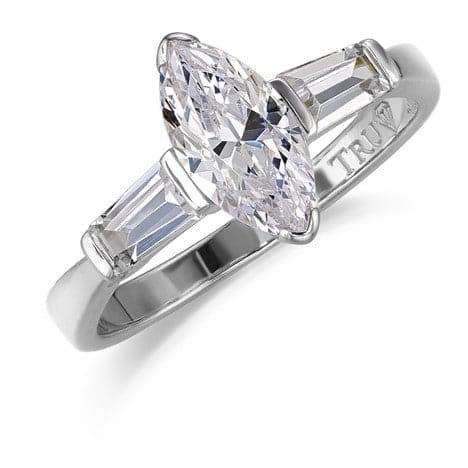 Tru-Diamonds™ Marquise and Tapered Baguette Cut Synthetic Lab Grown Diamond Trilogy Ring