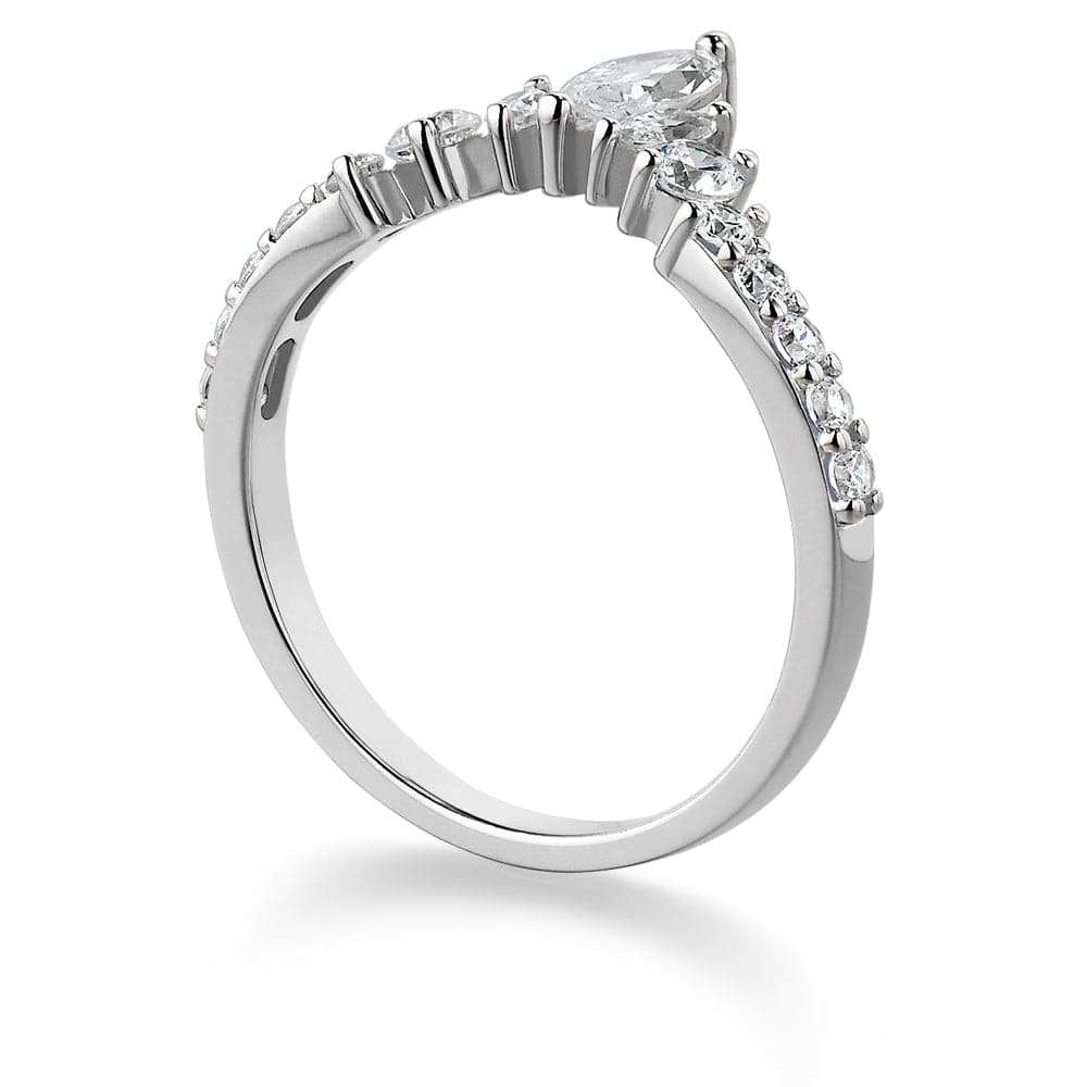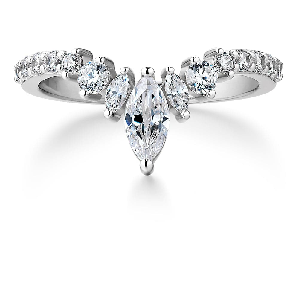 This whimsical Marquise Eternity Band feels like it comes straight out of a fantasy. This is the perfect upgrade to your wedding bands to add more detail and flare. This magnificent wishbone ring has a statement marquise centre gem, complimented by four smaller marquise gems, and a half band line with brilliant round Tru-Diamonds™.
