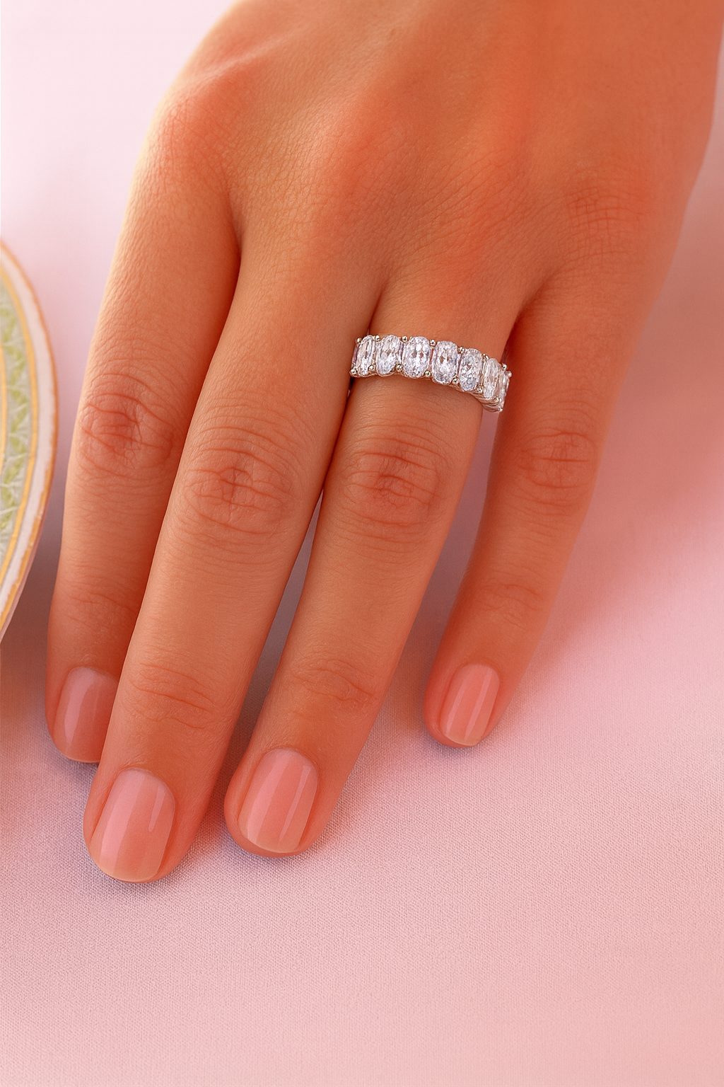 Tru-Diamonds™ Oval Cut Synthetic Lab Grown Diamond Eternity Ring