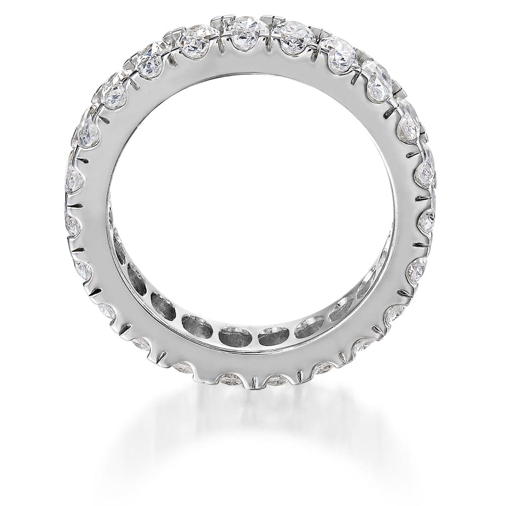An endless circle of brilliance. This exquisite eternity band features a continuous row of oval cut gems, each meticulously set to maximize fire and sparkle. The warm glow of gold enhances the icy brilliance of the gems, creating a luxurious balance of light and richness. A timeless symbol of everlasting love, this band is perfect for marking life’s most unforgettable moments.