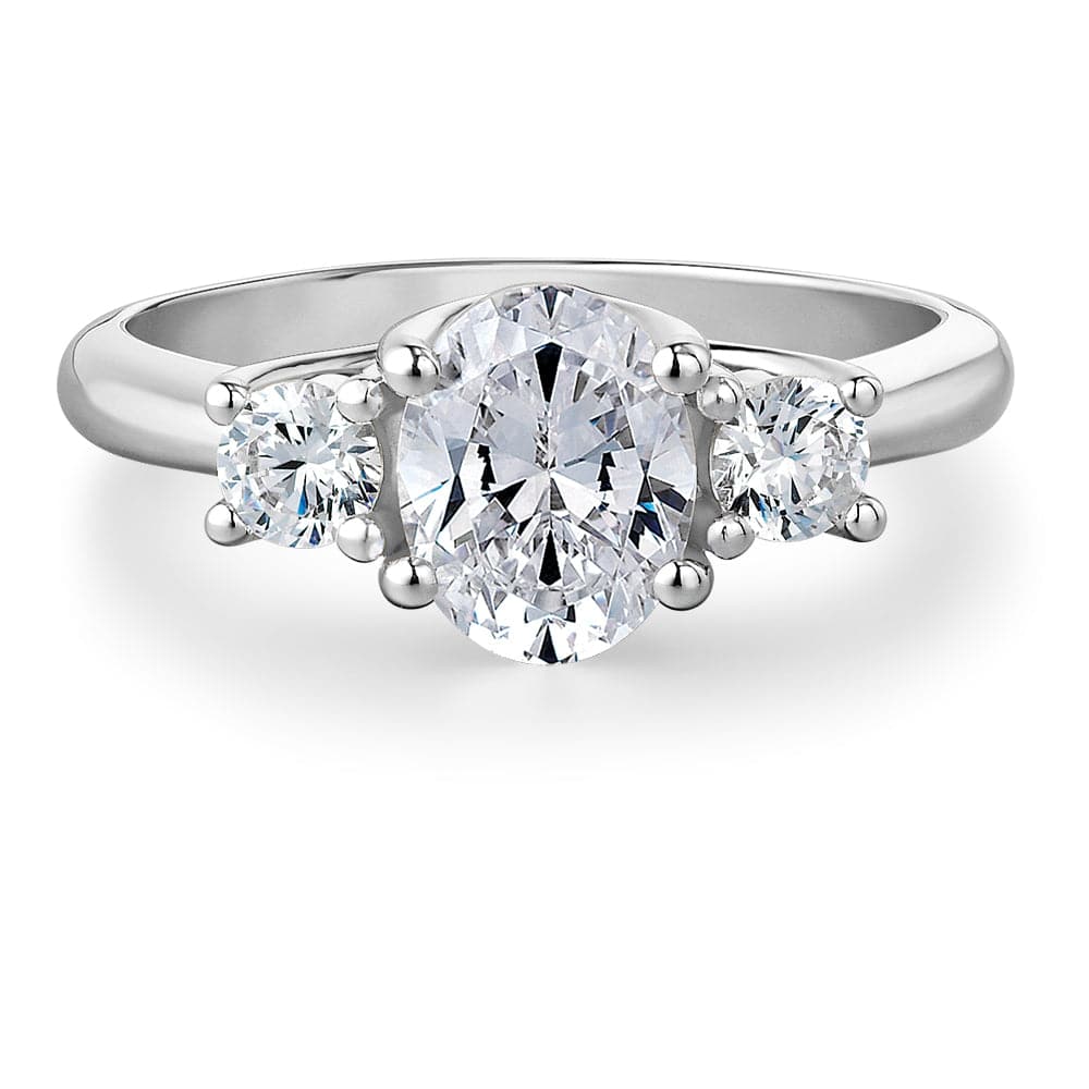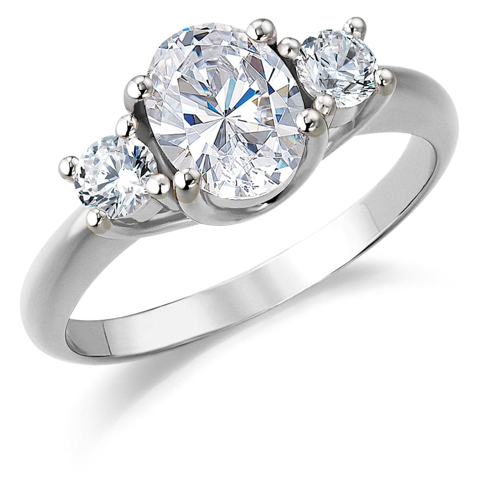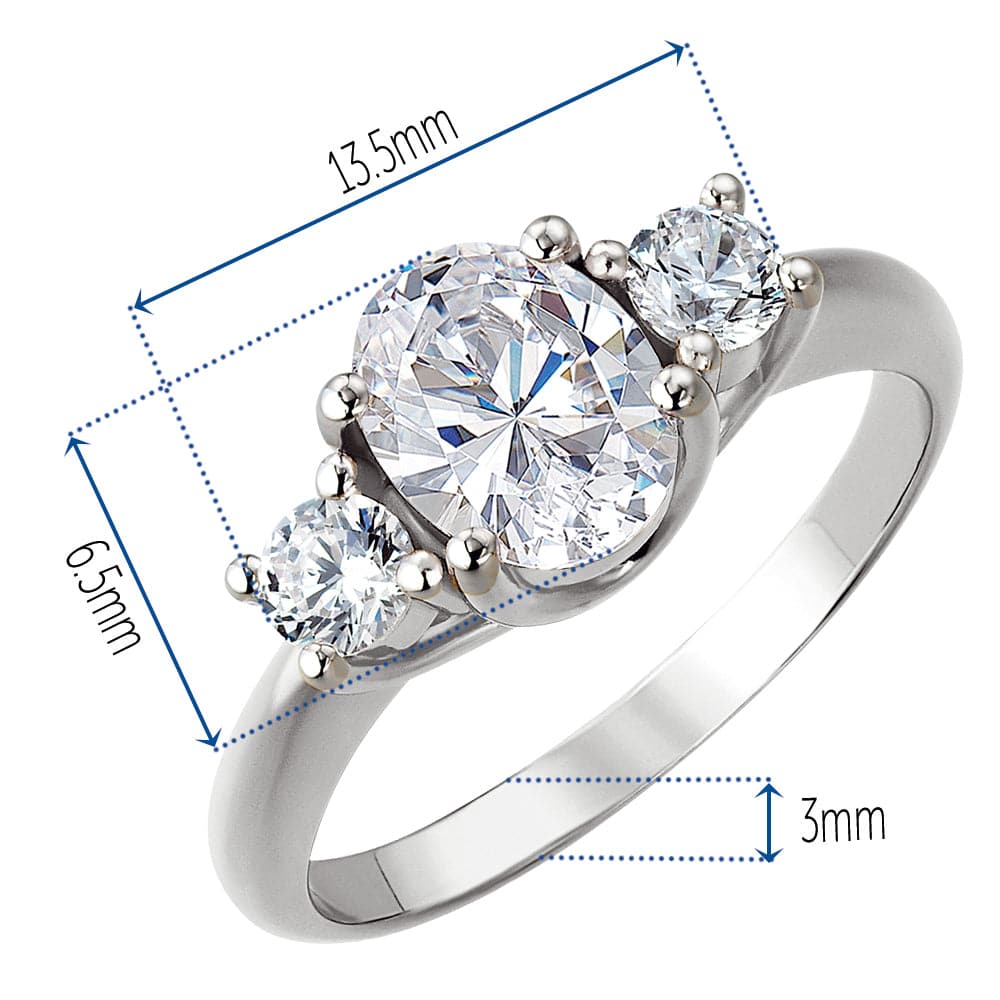 Tru-Diamonds™ Oval Cut Synthetic Lab Grown Diamond Trilogy Engagement Ring