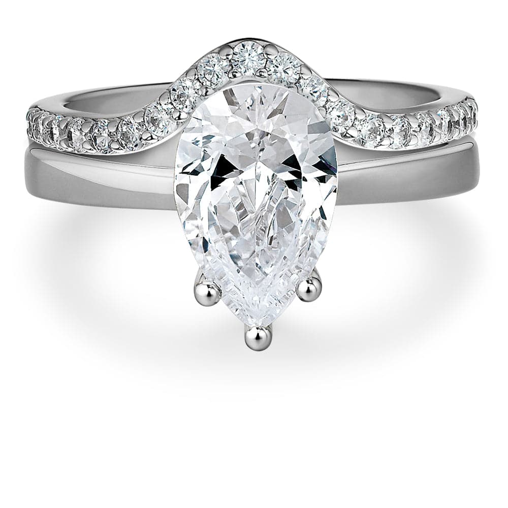 Tru-Diamonds™ Pear Cut Solitaire Synthetic Lab Grown Diamond Engagement & Wedding Ring Set