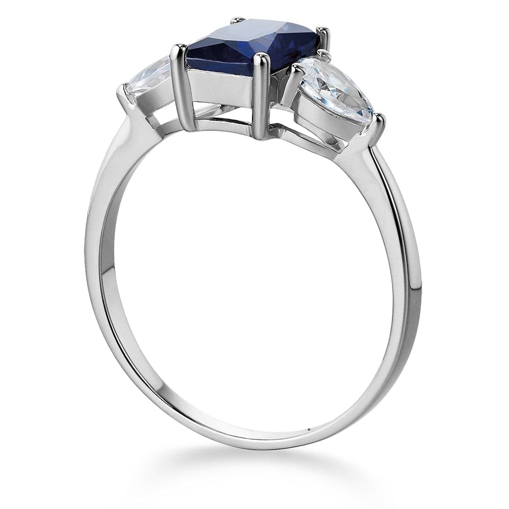 Tru-Diamonds™ Radiant and Pear Cut Synthetic Lab Grown Sapphire Trilogy Ring