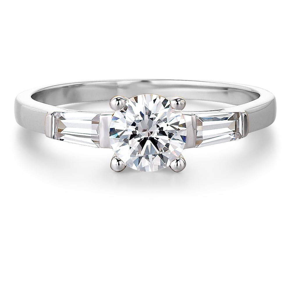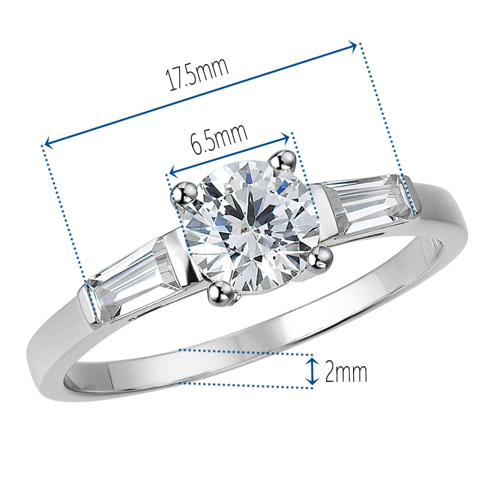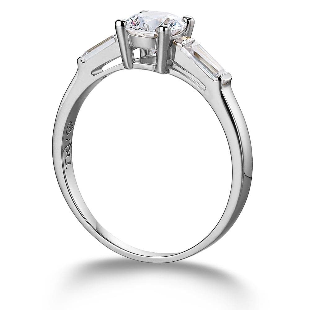 Tru-Diamonds™ Round Brilliant and Baguette Cut Synthetic Lab Grown Diamond Trilogy Ring
