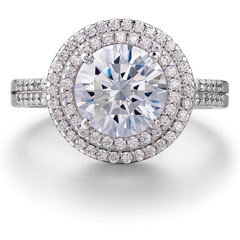 Tru-Diamonds™ Round Brilliant Cut Synthetic Lab Grown Diamond Double Halo Ring