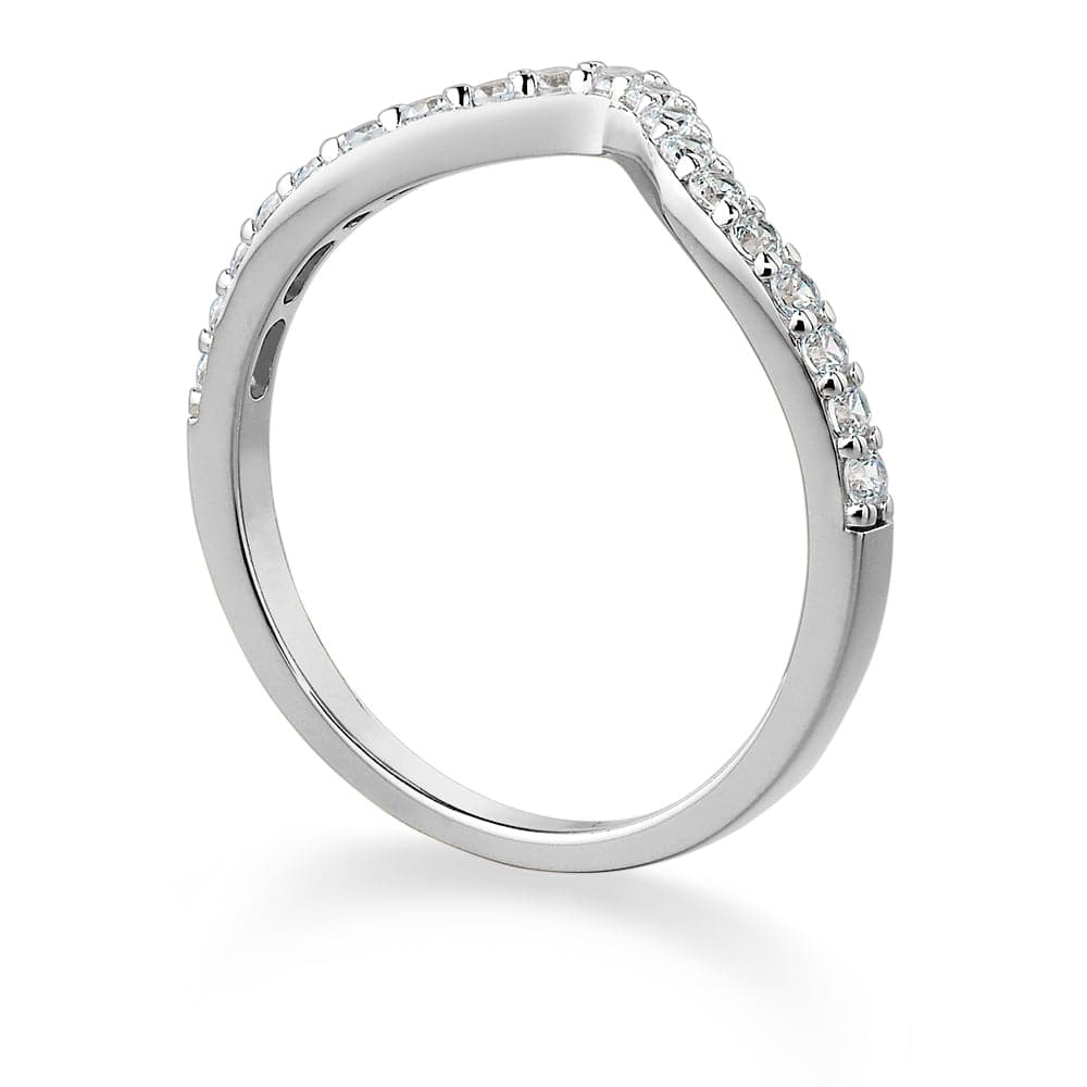 Simple means stunning with our Domed Half Eternity Ring. A shimmering row of 19 Tru-Diamonds™ gems gives this ring a delicate yet powerful shimmer.