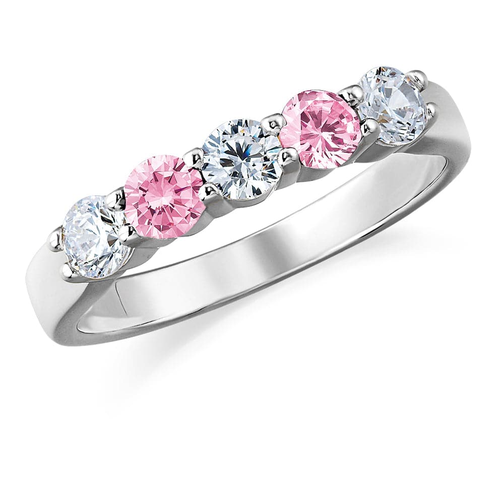 Add a touch of class and colour with this shimmering row of alternating pink and white Tru-Diamonds™ gems . A truly timeless yet modern design that combines splendour with elegance.