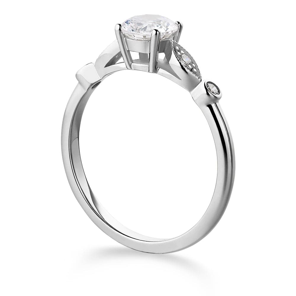 The Mon Amour Ring features a 1.0 ct. round cut centre gem, beautifully complemented by accent gems on the shank, giving a unique twist to a simple solitaire.