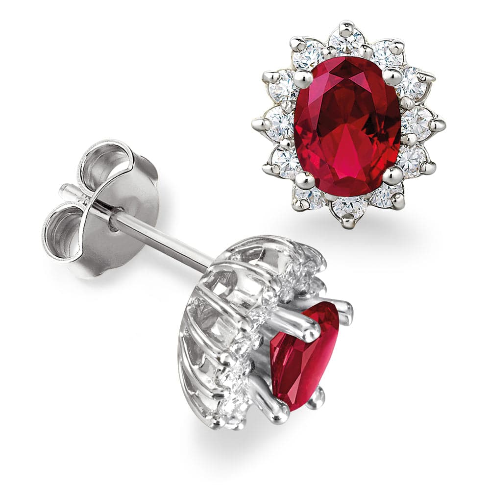 Tru Ruby & Tru-Diamonds™ Synthetic Lab Grown Diamond Cluster Stud Earrings